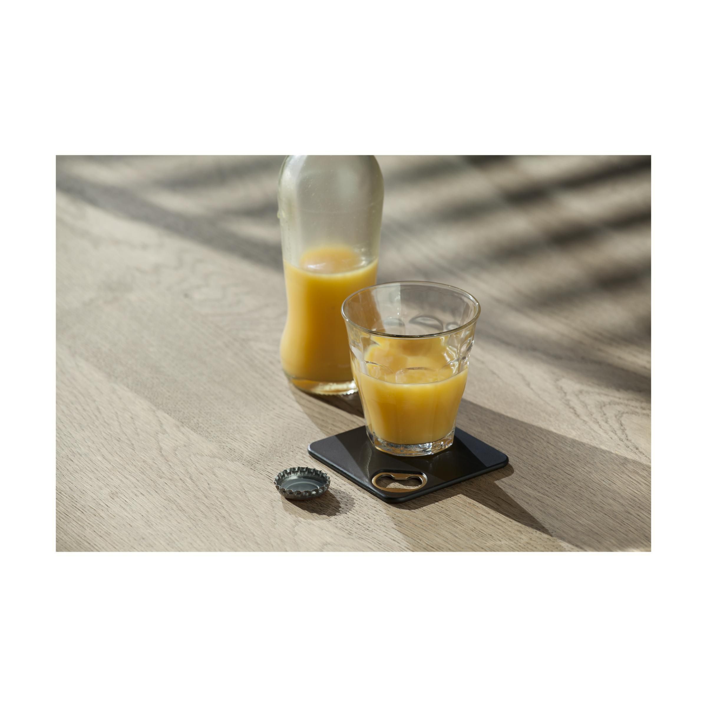 Untersetzer mit integriertem Öffner aus Metall. Mit rutschfester Unterseite. Personalisierbar mit Ihrem eigenen Foto, Logo oder einem individuellen Design in Vollfarbe. Optimal geeignet zum Versenden als Briefkastengeschenk.