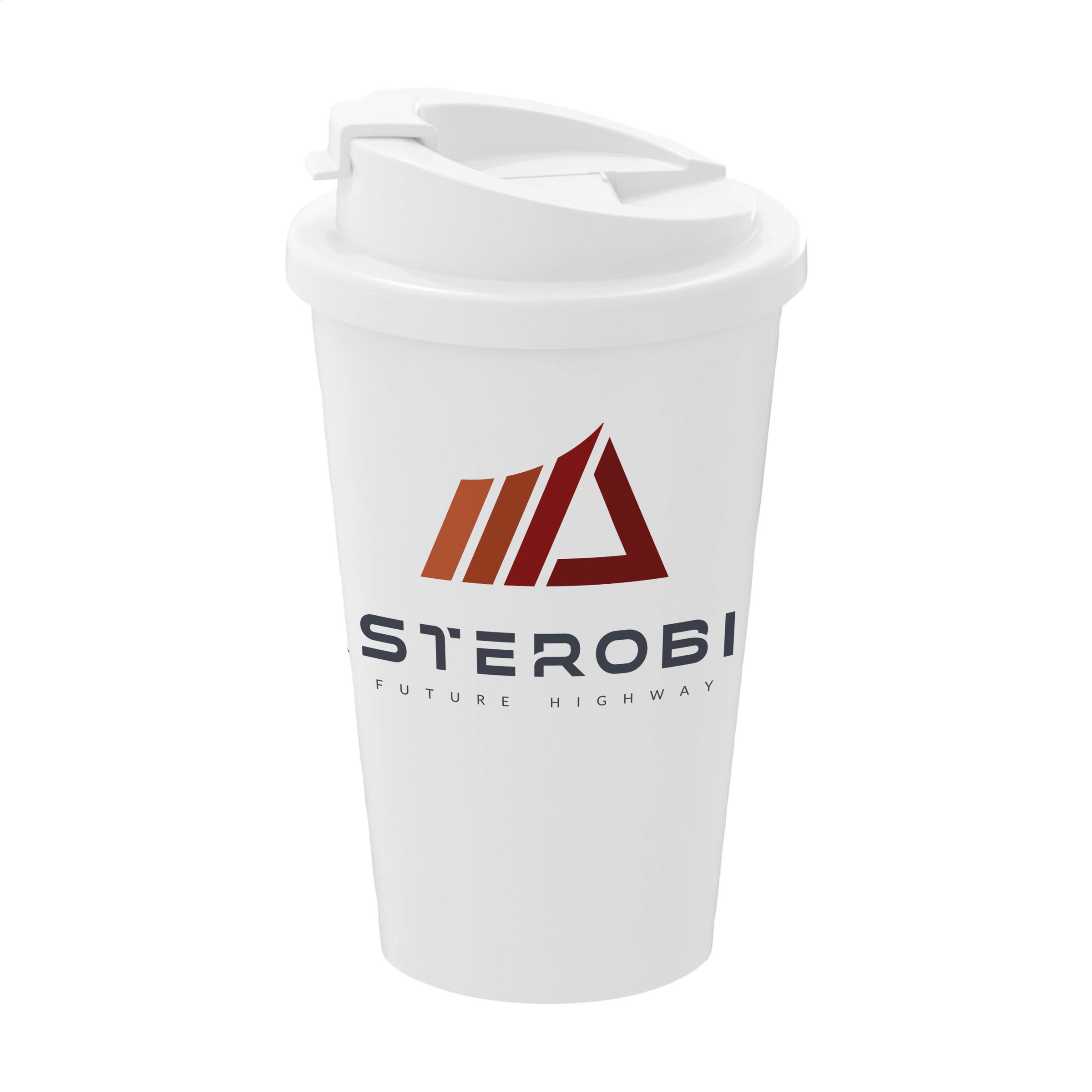 Doppelwandiger, PP-Kunststoff Kaffeebecher-to-go. Der Schraubdeckel hat eine Trinköffnung mit Klickverschluss und ist besonders fest mit dem Becher verbunden. Passt in den Standard-Getränkehalter im Auto und ist somit praktisch für unterwegs. Wiederverwendba und geeignet für Lebensmittel. Nicht spülmaschinengeeignet. Fassungsvermögen 350 ml. Hergestellt in Deutschland.