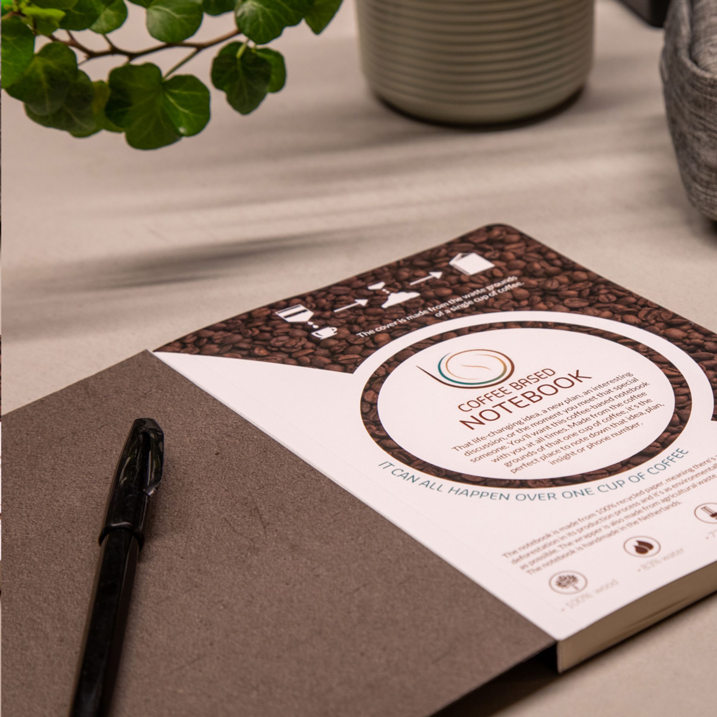 WoW! Ein A5-Notizbuch mit einem Einband aus Kaffeesatz. Es riecht sogar nach Kaffee. Nach dem Aufbrühen von Kaffee bleibt Kaffeesatz zurück. Daraus besteht dieses Produkt. Kaffeesatz ist ein organisches Material und von Natur aus biologisch abbaubar. Dieses Notizbuch eignet sich perfekt, um sich bei wichtigen Gesprächen Notizen zu machen und um brillante Eingebungen festzuhalten. Die 80 Blatt/160 Seiten liniertes Papier (80 g / m²) in diesem Notizbuch sind zu 100% recycelt. Für dieses Notizbuch werden also keine Wälder abgeholzt.