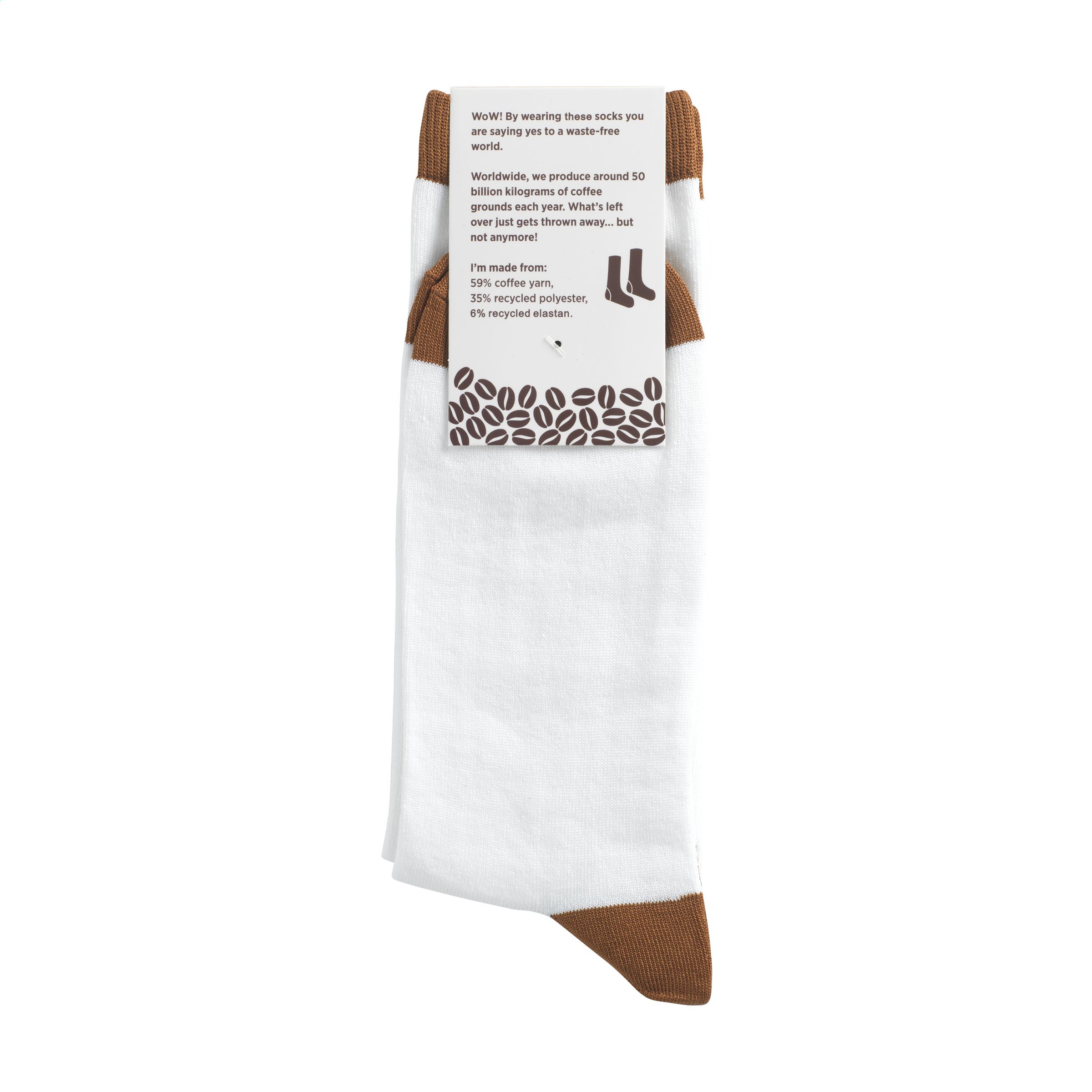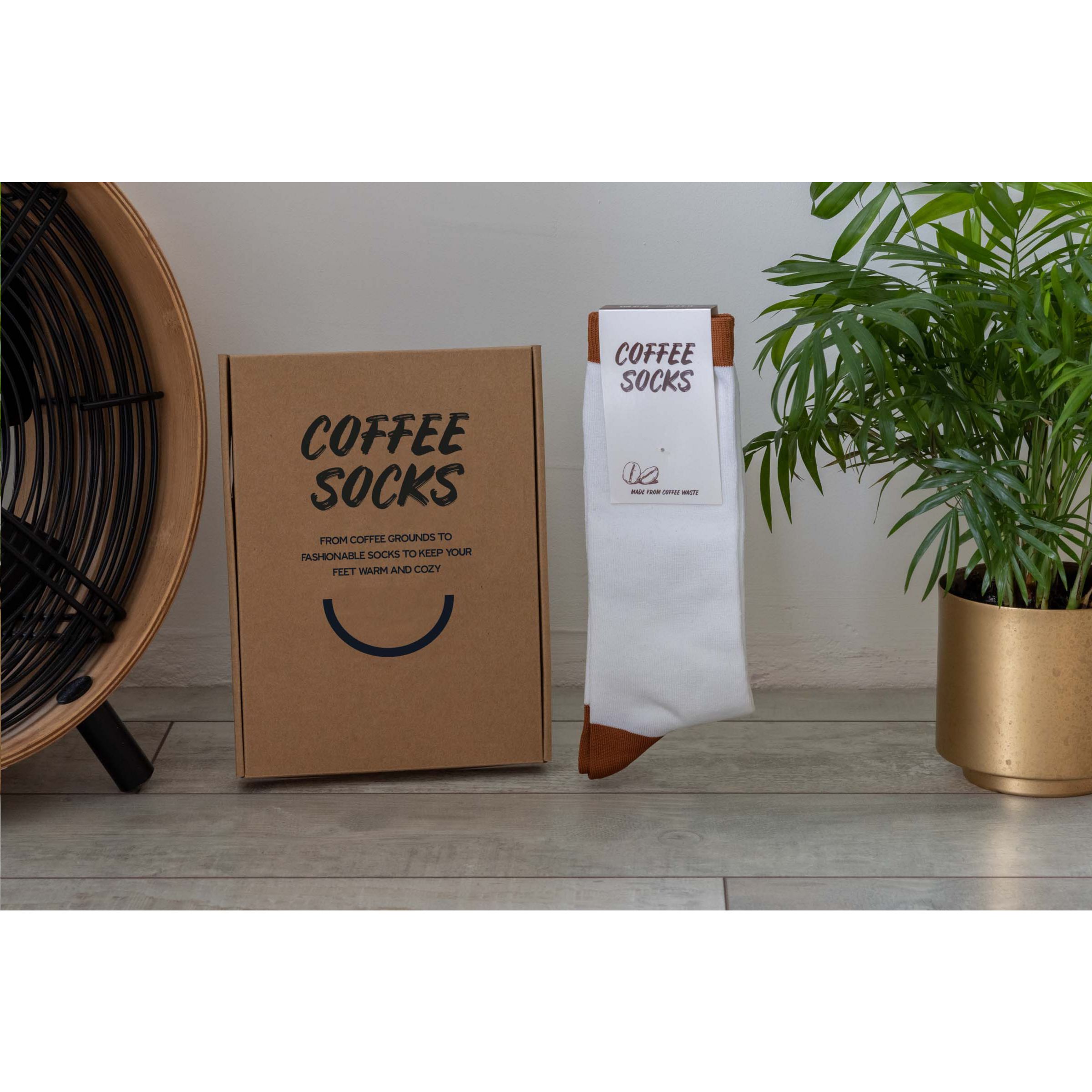 WoW! Socken aus Kaffeesatz. Nach dem Aufbrühen von Kaffee bleibt Kaffeesatz zurück. Daraus wird u. a. Garn hergestellt. Diese Socken sind aus solchen Garnen gestrickt. Zusammensetzung dieser Socken: 59 % Kaffeegarn, 35 % recyceltes Polyester und 6% recyceltes Elastan. Einheitsgröße (41–46). Weltweit werden pro Jahr etwa 50 Milliarden Kilo Kaffeesatz produziert. Was übrig bleibt, wird einfach weggeworfen. Aber jetzt nicht mehr. Kaffeesatz wird mit recyceltem PET gemischt, um Kaffeegarn herzustellen. Dieses Garn kann dann zu Produkten wie diesen Socken verwebt werden. Diese Socken sind nicht nur wegen des Designs schön, das an die Farbe einer frisch gebrühten Tasse Kaffee angelehnt ist. Sie tragen auch dazu bei, unseren weltweiten Kaffeeabfall zu recyceln. Wird einzeln in einem Kraftkarton geliefert.
