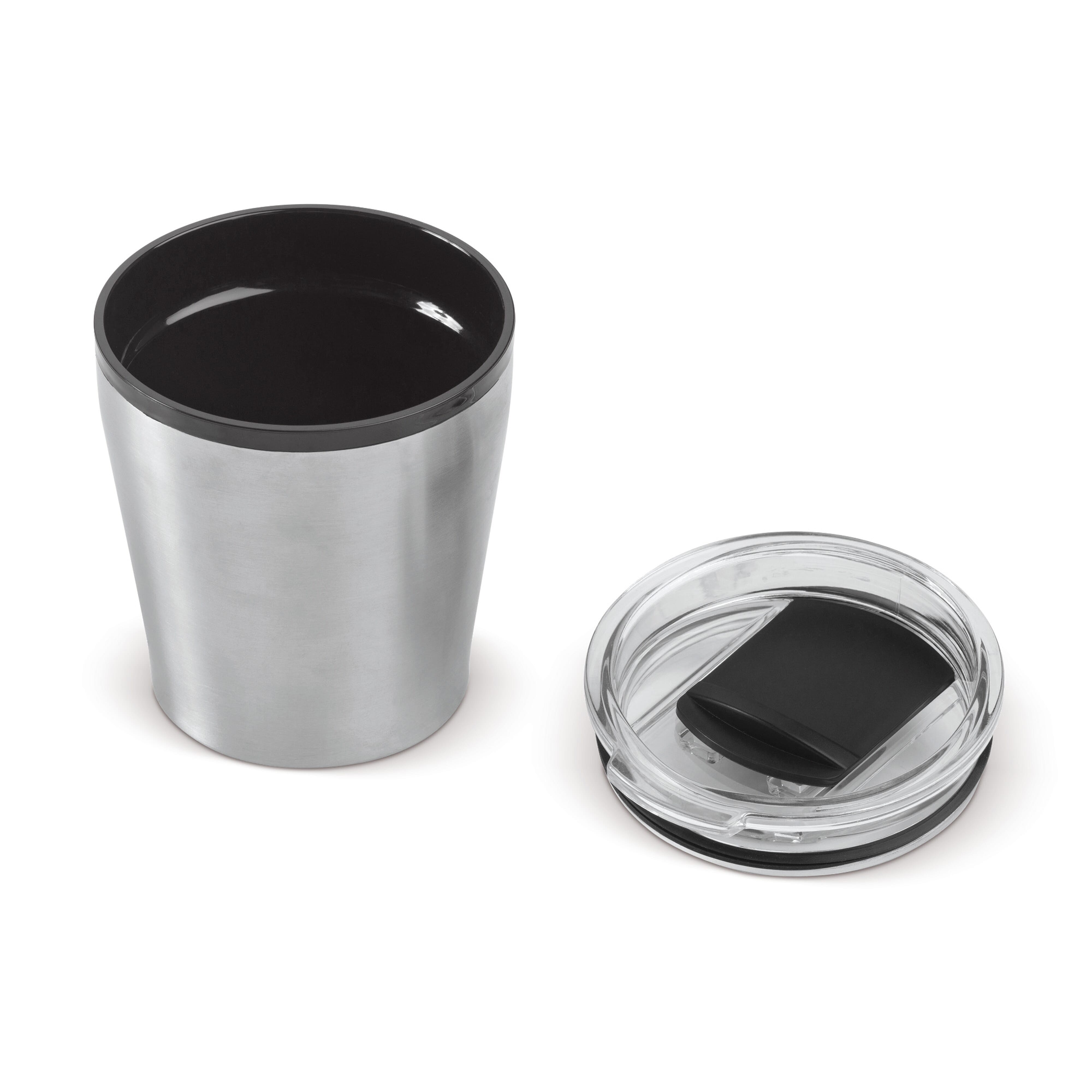 Eile am Morgen, aber ein Kaffee für unterwegs mitnehmen? Ein Isolierbecher passt nicht unter Ihre Kaffeemaschine? Die Schreibtischtasse ist die perfekte Lösung zum mitnehmen. Die Tasse passt unter fast jede Kaffeemaschine. Sie besteht außen aus Edelstahl und innen aus Kunststoff.