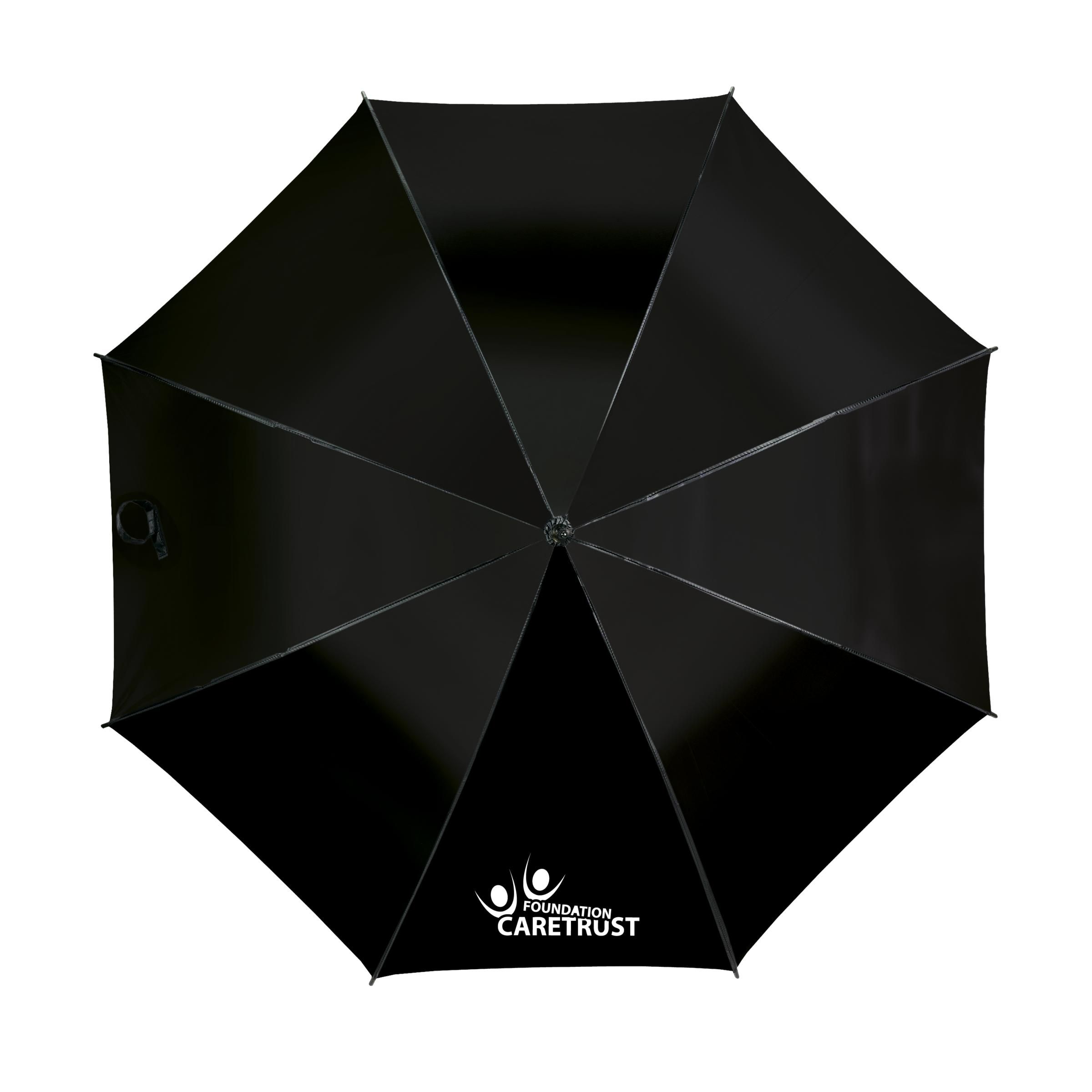 Regenschirm mit automatischer Teleskopöffnung. 190T Polyester-Bespannung, Fiberglasrahmen, Metallschaft, Klettverschluss, gebogenem, klassischem Handgriff, der durch die luxuriöse Gummiummantelung gut in der Hand liegt.