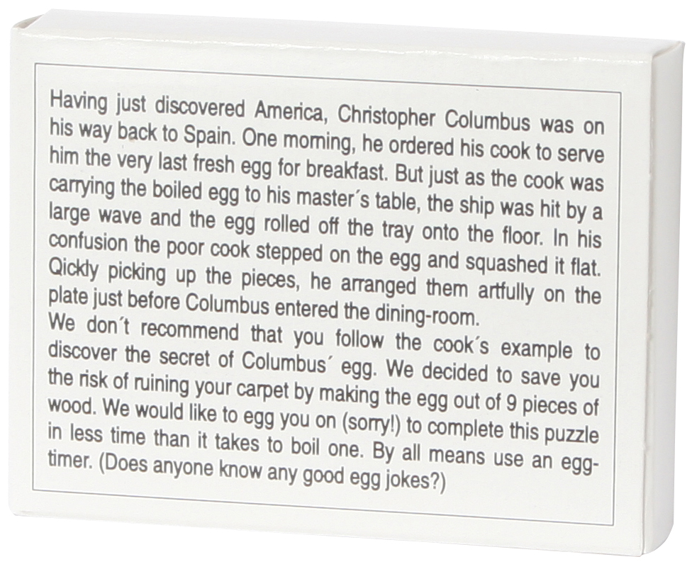 Christoph Kolumbus liebte sein Frühstücksei. Doch sein Koch, ein tollpatschiger Plattfußindianer, hat es fallengelassen. Zaubern Sie aus neun Teilen ein Ei!
