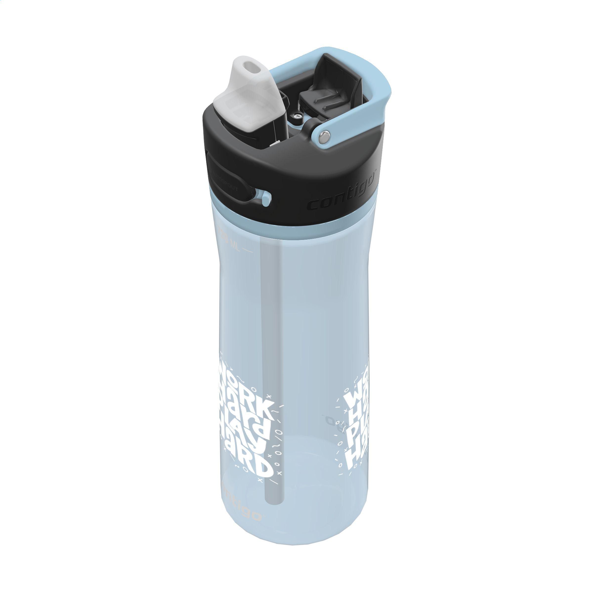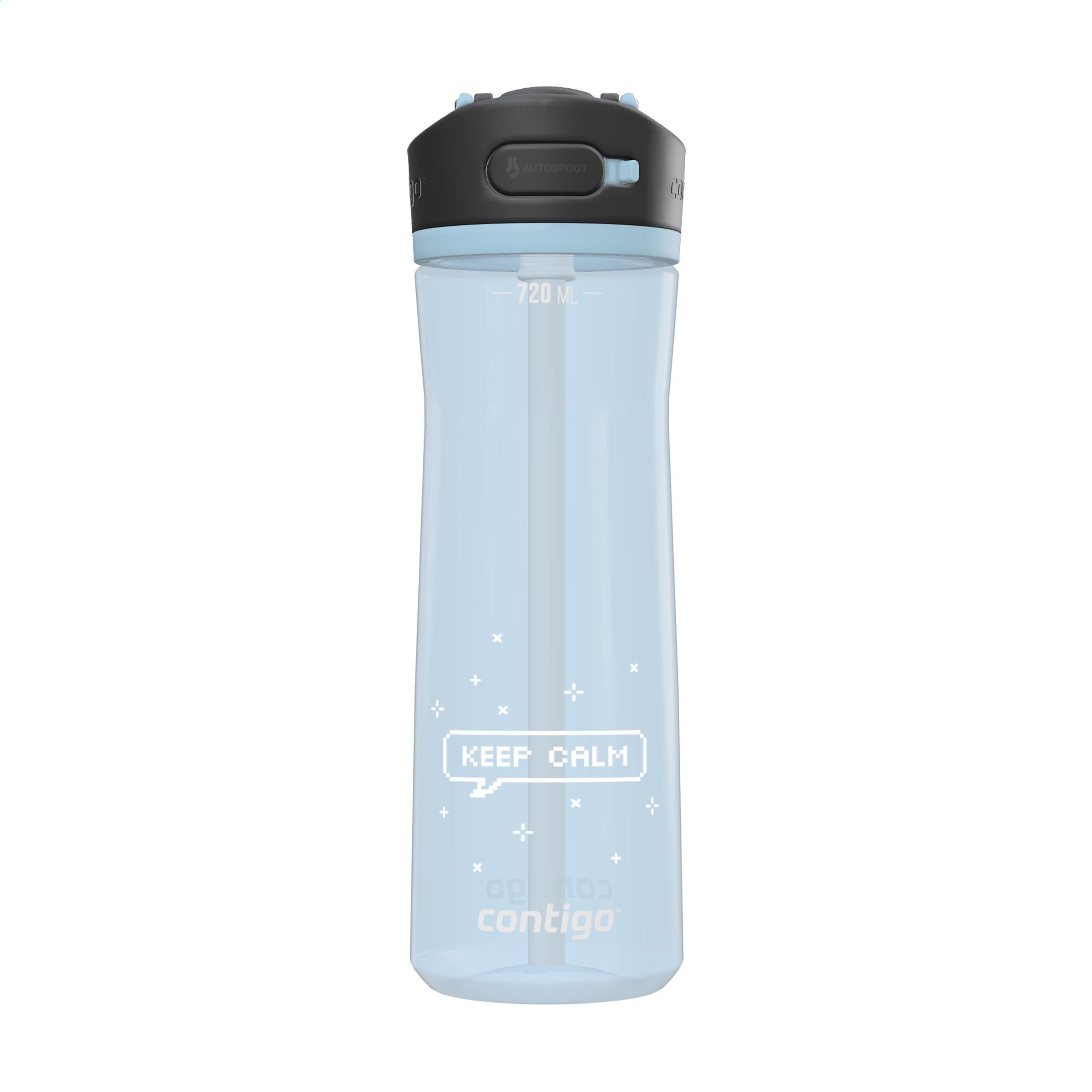 Benutzerfreundliche, trendige Contigo®-Wasserflasche aus Kunststoff. Die Flasche ist mit einem klappbaren Trinkverschluss und einem verschließbaren Strohhalm mit AUTOSPOUT™-Technologie ausgestattet – einem einzigartigen Verschlusssystem, das ein Verschütten verhindert. Im geschlossenen Zustand bleibt der Trinkverschluss gut vor Schmutz und Mikroben geschützt. Dank des schrägen Pop-up-Strohhalms, der fest im Deckel sitzt, kannst du mühelos jeden Tropfen austrinken. Die Flasche lässt sich dank des integrierten Trageringes leicht transportieren und passt in die meisten Standard-Getränkehalter von Autos. Der Deckel und das Gehäuse sind spülmaschinengeeignet (in den oberen Korb stellen). Um den Aufdruck zu erhalten, wird Waschen von Hand empfohlen. Fassungsvermögen 720 ml. LAGERVERFÜGBARKEIT: Bis zu 1000 Stück innerhalb von 10 Werktagen zuzüglich Standardlieferzeit verfügbar. Vorbehaltlich der Verfügbarkeit.Contigo: Das Beste in Qualität, Design und Technologie. Sofort erkennbar durch ihr schlankes und stilvolles Design, robust und solide. Die innovativen Wasserflaschen und Thermobecher sind geruchs- und geschmacksneutral sowie BPA-frei. Die Trinkflaschen sind einhändig bedienbar und garantiert 100% auslaufsicher, sodass sie überall und jederzeit, auch unterwegs, verwendet werden können. Mit 2 Jahren Herstellergarantie.