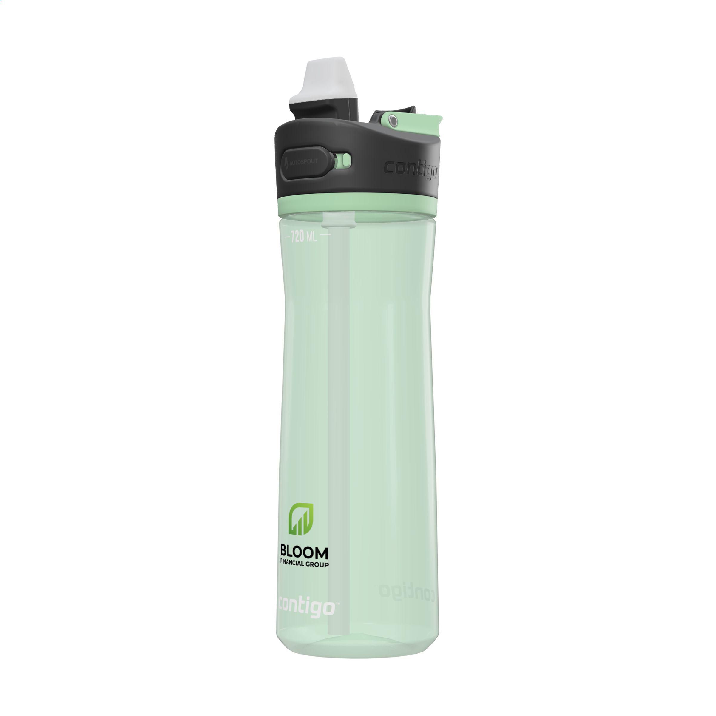 Benutzerfreundliche, trendige Contigo®-Wasserflasche aus Kunststoff. Die Flasche ist mit einem klappbaren Trinkverschluss und einem verschließbaren Strohhalm mit AUTOSPOUT™-Technologie ausgestattet – einem einzigartigen Verschlusssystem, das ein Verschütten verhindert. Im geschlossenen Zustand bleibt der Trinkverschluss gut vor Schmutz und Mikroben geschützt. Dank des schrägen Pop-up-Strohhalms, der fest im Deckel sitzt, kannst du mühelos jeden Tropfen austrinken. Die Flasche lässt sich dank des integrierten Trageringes leicht transportieren und passt in die meisten Standard-Getränkehalter von Autos. Der Deckel und das Gehäuse sind spülmaschinengeeignet (in den oberen Korb stellen). Um den Aufdruck zu erhalten, wird Waschen von Hand empfohlen. Fassungsvermögen 720 ml. LAGERVERFÜGBARKEIT: Bis zu 1000 Stück innerhalb von 10 Werktagen zuzüglich Standardlieferzeit verfügbar. Vorbehaltlich der Verfügbarkeit.Contigo: Das Beste in Qualität, Design und Technologie. Sofort erkennbar durch ihr schlankes und stilvolles Design, robust und solide. Die innovativen Wasserflaschen und Thermobecher sind geruchs- und geschmacksneutral sowie BPA-frei. Die Trinkflaschen sind einhändig bedienbar und garantiert 100% auslaufsicher, sodass sie überall und jederzeit, auch unterwegs, verwendet werden können. Mit 2 Jahren Herstellergarantie.