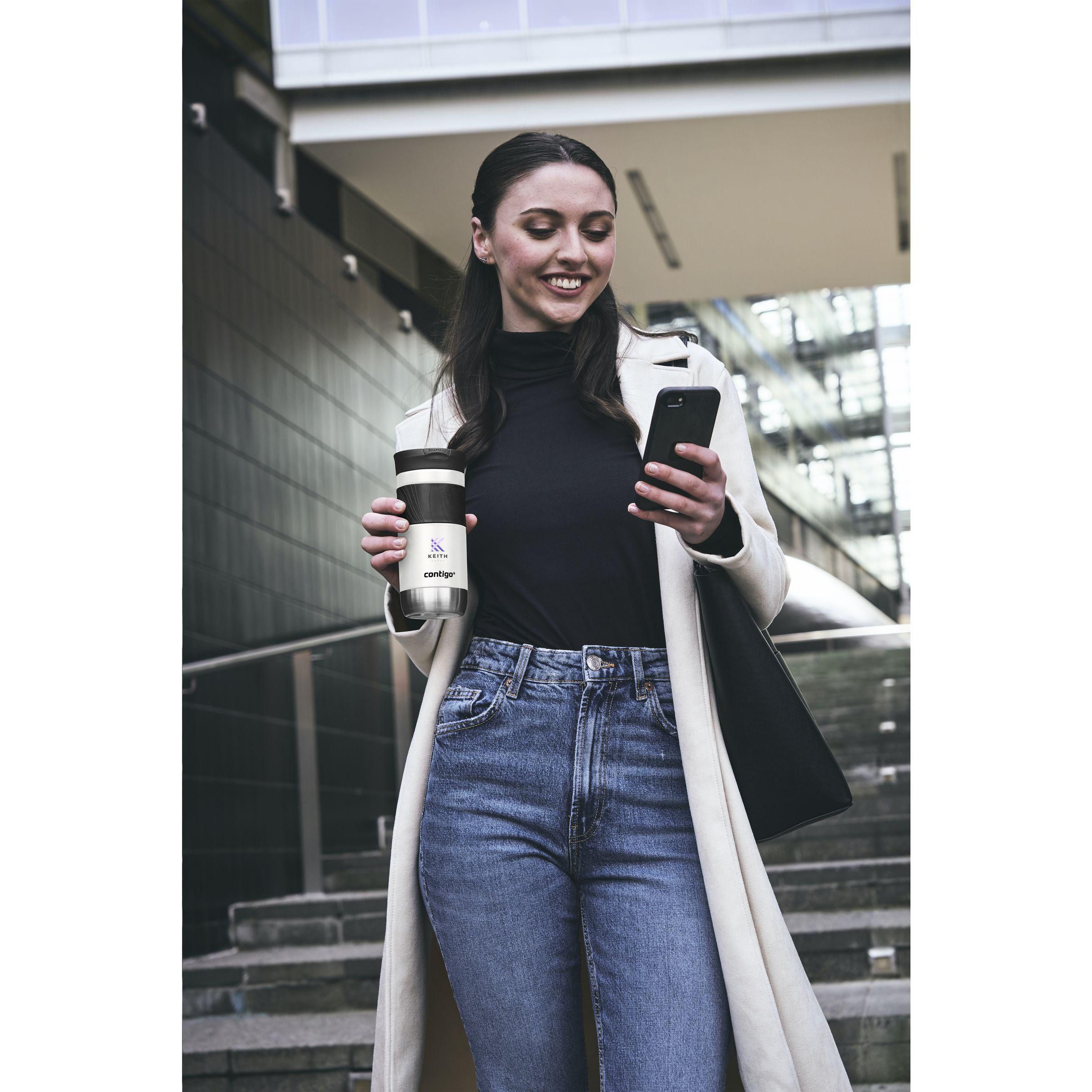 Doppelwandige rostfreie Edelstahl-Thermobecher: vakuumisoliert, versehen mit einem großzügigen, gummierten Antirutsch-Griff, Trinköffnung mit SNAPSEAL™-Technologie, macht das Trinken angenehm. Zum Trinken den Knopf mit einer Hand hochdrücken und zum Schließen des Bechers nach unten drücken. 100% auslaufsicher. Die THERMALOCK™-Technologie hält Getränke bis zu 18 Stunden kalt oder bis zu 7 Stunden warm. Nur der Deckel ist spühmaschinengeeignet (in der oberen Korb stellen). Spülen Sie den Becher mit der Hand. Fassungsvermögen 470 ml. LAGERBESTANDSINFORMATION: Bis zu 1.000 Stück innerhalb von 10 Arbeitstagen verfügbar. Ausnahmen vorbehalten. Contigo: der Spezialist bei Qualität, Design und Technologie. Direkt erkennbar an dem schlichten und zeitlosen Design - haltbar und robust. Die innovativen Contigo Wasserflaschen und Thermobecher sind geruchs- und geschmacksneutral und BPA-frei. Die Trinkflaschen sind mit einer Hand zu bedienen und garantiert tropfsicher, so ist die überall und jederzeit nutzbar. Mit 2 Jahre Herstellergarantie.