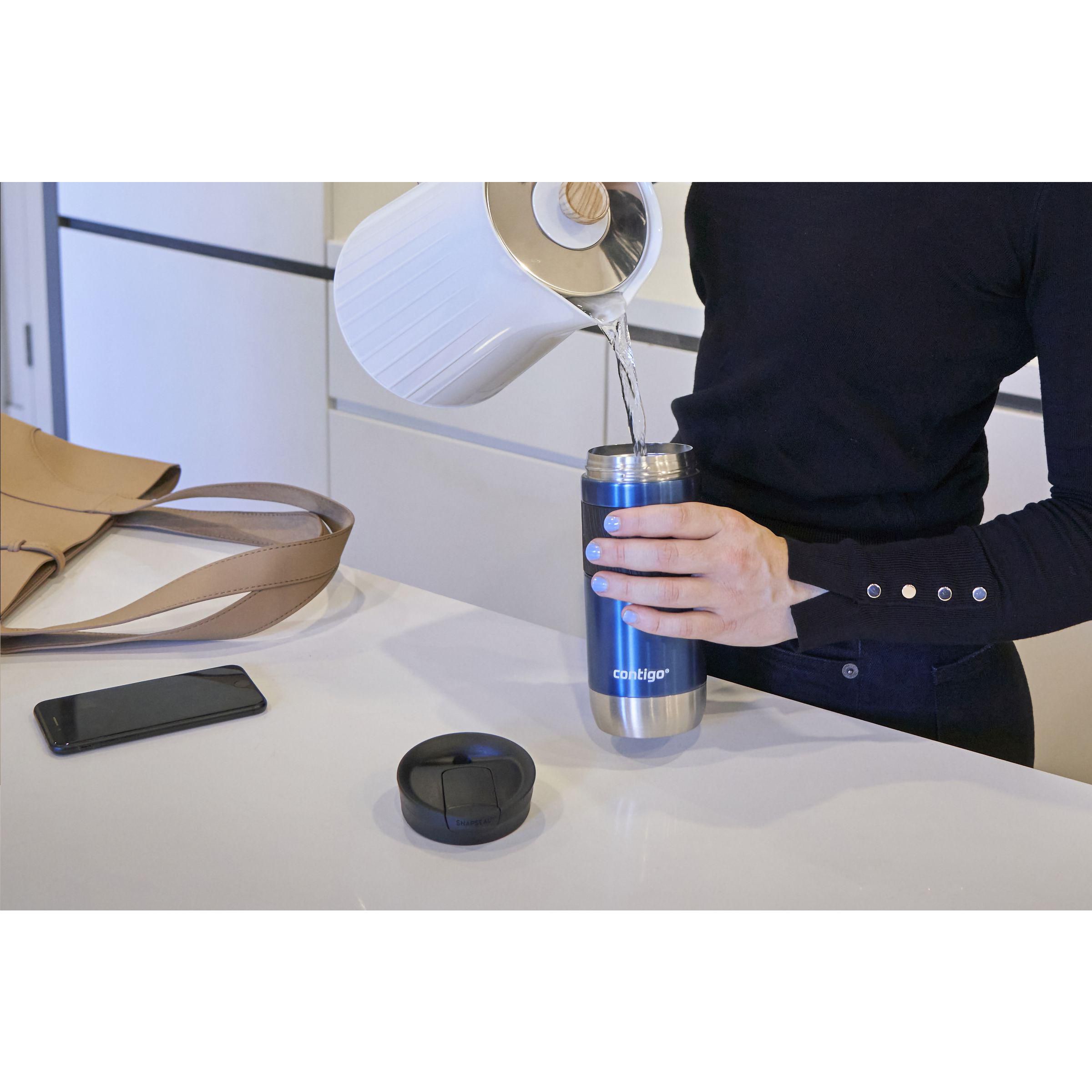 Doppelwandige rostfreie Edelstahl-Thermobecher: vakuumisoliert, versehen mit einem großzügigen, gummierten Antirutsch-Griff, Trinköffnung mit SNAPSEAL™-Technologie, macht das Trinken angenehm. Zum Trinken den Knopf mit einer Hand hochdrücken und zum Schließen des Bechers nach unten drücken. 100% auslaufsicher. Die THERMALOCK™-Technologie hält Getränke bis zu 18 Stunden kalt oder bis zu 7 Stunden warm. Nur der Deckel ist spühmaschinengeeignet (in der oberen Korb stellen). Spülen Sie den Becher mit der Hand. Fassungsvermögen 470 ml. LAGERBESTANDSINFORMATION: Bis zu 1.000 Stück innerhalb von 10 Arbeitstagen verfügbar. Ausnahmen vorbehalten. Contigo: der Spezialist bei Qualität, Design und Technologie. Direkt erkennbar an dem schlichten und zeitlosen Design - haltbar und robust. Die innovativen Contigo Wasserflaschen und Thermobecher sind geruchs- und geschmacksneutral und BPA-frei. Die Trinkflaschen sind mit einer Hand zu bedienen und garantiert tropfsicher, so ist die überall und jederzeit nutzbar. Mit 2 Jahre Herstellergarantie.