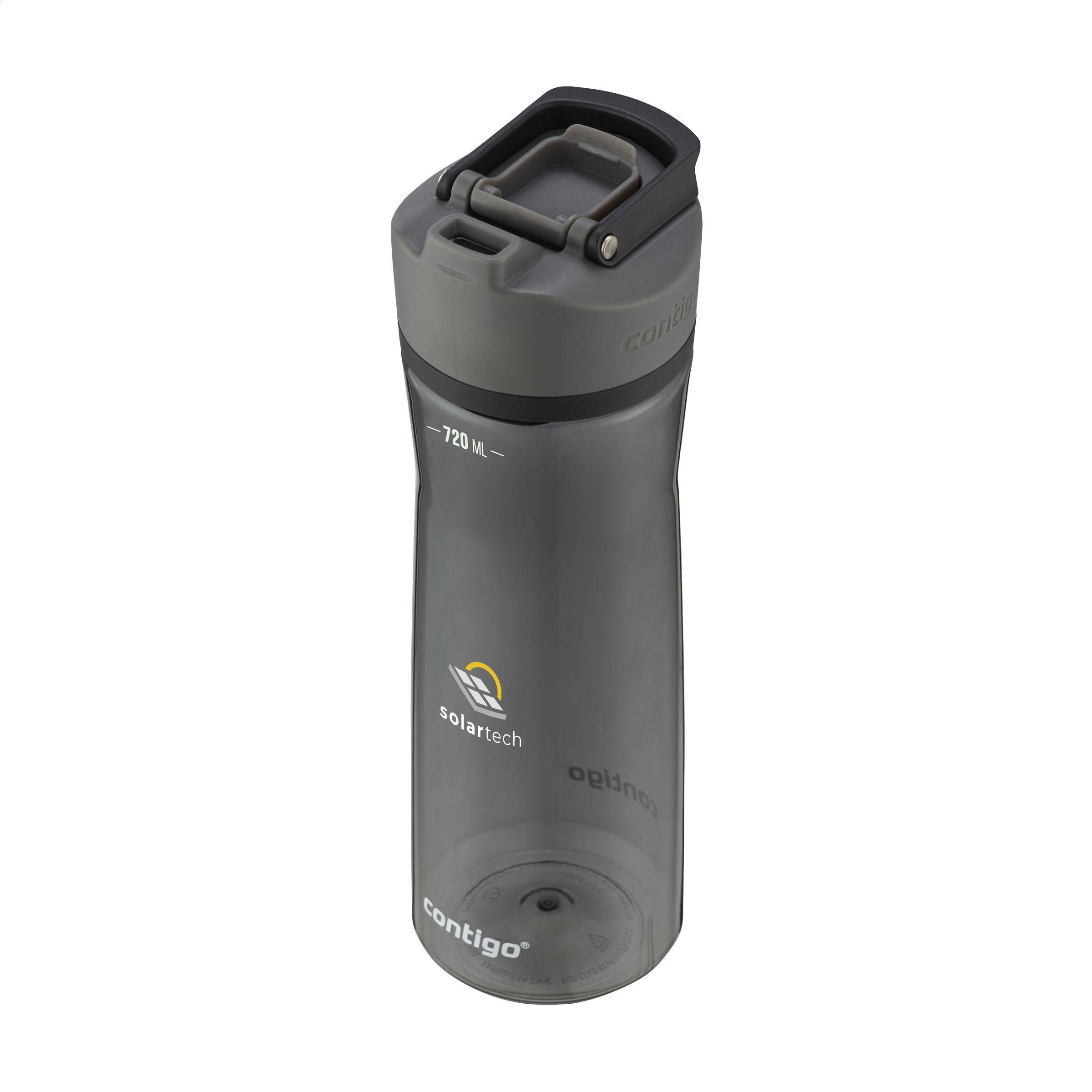 Einfach zu bedienende Wasserflasche Contigo® Cortland. Aus 50% recyceltem Material. Die Flasche ist mit der AUTOSEAL™-Technologie, einem einzigartigen Verschlusssystem, und einem Karabinerhaken ausgestattet. Der Deckel und die Flasche sind spülmaschinengeeignet (oberes Fach). Zur Erhaltung des Aufdrucks wird Handwäsche empfohlen. Fassungsvermögen 720 ml.LAGERVERFÜGBARKEIT: Bis zu 1000 Stück innerhalb von 10 Werktagen zuzüglich Standardlieferzeit verfügbar. Vorbehaltlich der Verfügbarkeit.Contigo: Das Beste in Qualität, Design und Technologie. Sofort erkennbar durch ihr schlankes und stilvolles Design, robust und solide. Die innovativen Wasserflaschen und Thermobecher sind geruchs- und geschmacksneutral sowie BPA-frei. Die Trinkflaschen sind einhändig bedienbar und garantiert 100% auslaufsicher, sodass sie überall und jederzeit, auch unterwegs, verwendet werden können. Mit 2 Jahren Herstellergarantie.