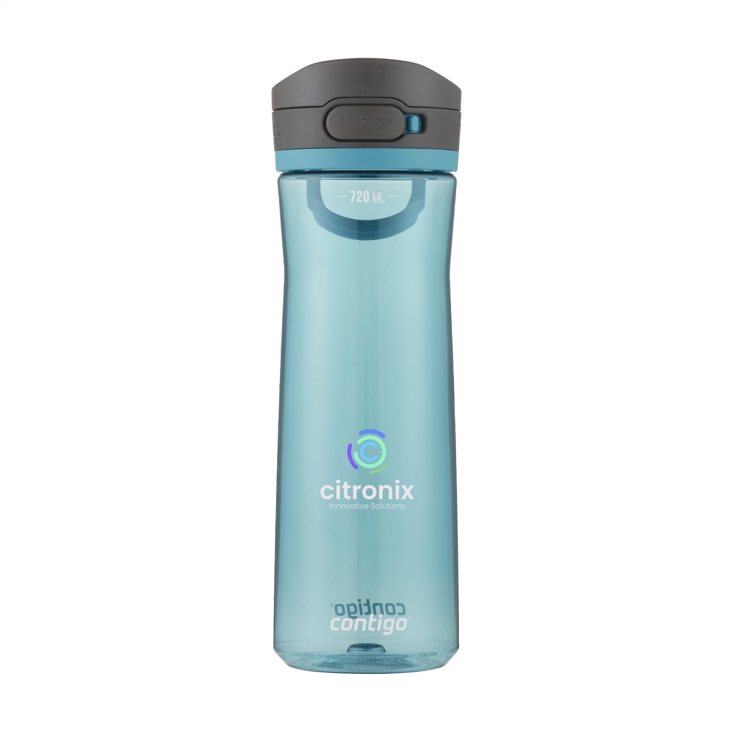 Benutzerfreundliche Wasserflasche aus klarem Tritan. Dank der AUTOPOP®-Technologie mit einer Hand öffnen und trinken. Ideal für unterwegs. Mit großzügiger Trinköffnung, Verschlusssystem und Karabinerhaken. 100% auslaufsicher. Der Deckel und das Gehäuse sind spülmaschinengeeignet (in den oberen Korb stellen). Um den Aufdruck zu erhalten, wird Waschen von Hand empfohlen. Fassungsvermögen 720 ml. LAGERBESTANDSINFORMATION: Bis zu 1.000 Stück innerhalb von 10 Arbeitstagen verfügbar. Ausnahmen vorbehalten. Contigo: der Spezialist bei Qualität, Design und Technologie. Direkt erkennbar an dem schlichten und zeitlosen Design - haltbar und robust. Die innovativen Contigo Wasserflaschen und Thermobecher sind geruchs- und geschmacksneutral. Die Trinkflaschen sind mit einer Hand zu bedienen und garantiert tropfsicher, so ist die überall und jederzeit nutzbar. Mit 2 Jahre Herstellergarantie.