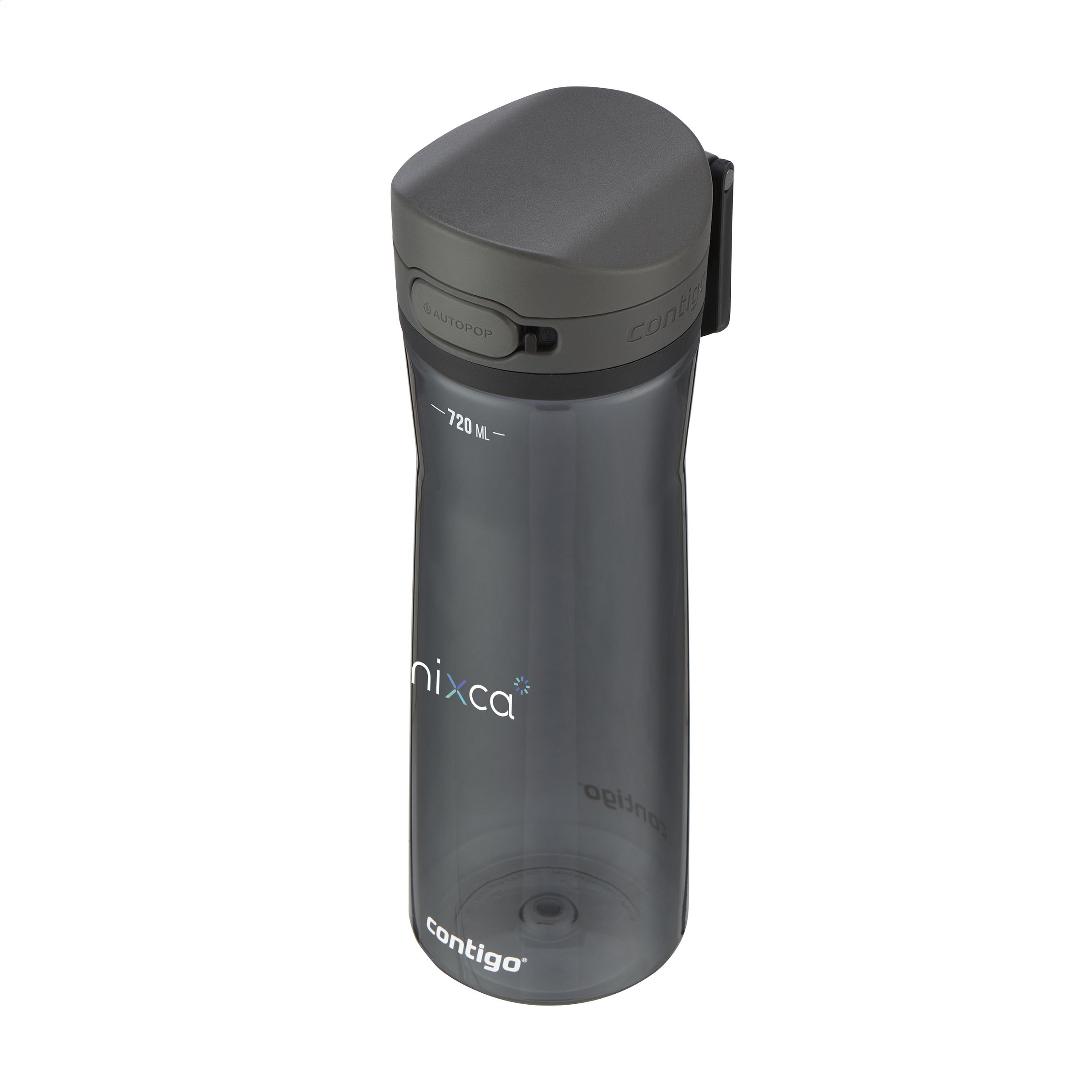 Benutzerfreundliche Wasserflasche aus klarem Tritan. Dank der AUTOPOP®-Technologie mit einer Hand öffnen und trinken. Ideal für unterwegs. Mit großzügiger Trinköffnung, Verschlusssystem und Karabinerhaken. 100% auslaufsicher. Der Deckel und das Gehäuse sind spülmaschinengeeignet (in den oberen Korb stellen). Um den Aufdruck zu erhalten, wird Waschen von Hand empfohlen. Fassungsvermögen 720 ml. LAGERBESTANDSINFORMATION: Bis zu 1.000 Stück innerhalb von 10 Arbeitstagen verfügbar. Ausnahmen vorbehalten. Contigo: der Spezialist bei Qualität, Design und Technologie. Direkt erkennbar an dem schlichten und zeitlosen Design - haltbar und robust. Die innovativen Contigo Wasserflaschen und Thermobecher sind geruchs- und geschmacksneutral. Die Trinkflaschen sind mit einer Hand zu bedienen und garantiert tropfsicher, so ist die überall und jederzeit nutzbar. Mit 2 Jahre Herstellergarantie.