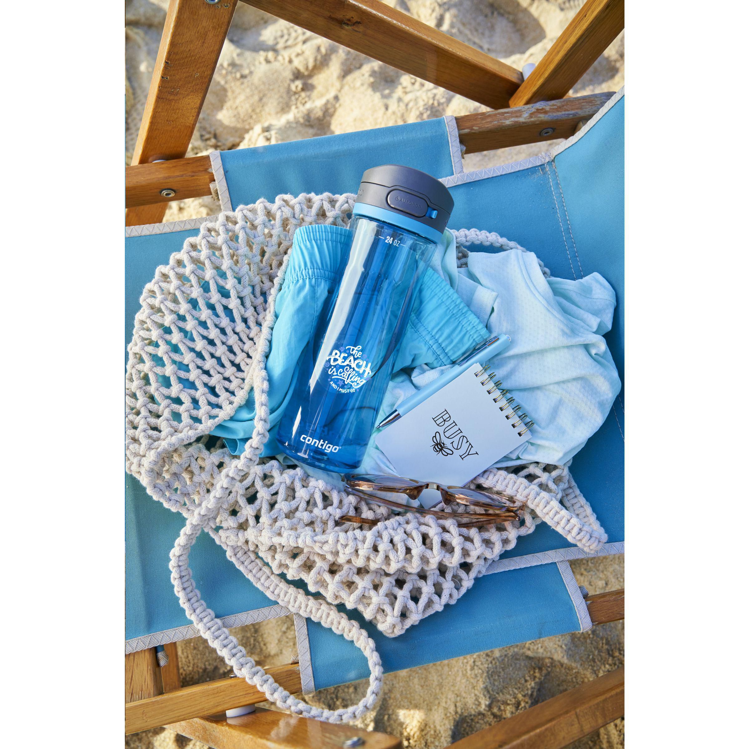Benutzerfreundliche Wasserflasche aus klarem Tritan. Dank der AUTOPOP™-Technologie mit einer Hand öffnen und trinken. Ideal für unterwegs. Mit großzügiger Trinköffnung, Verschlusssystem und Karabinerhaken. 100% auslaufsicher. Der Deckel und das Gehäuse sind spülmaschinengeeignet (in den oberen Korb stellen). Um den Aufdruck zu erhalten, wird Waschen von Hand empfohlen. Fassungsvermögen 720 ml. LAGERBESTANDSINFORMATION: Bis zu 1.000 Stück innerhalb von 10 Arbeitstagen verfügbar. Ausnahmen vorbehalten. Contigo: der Spezialist bei Qualität, Design und Technologie. Direkt erkennbar an dem schlichten und zeitlosen Design - haltbar und robust. Die innovativen Contigo Wasserflaschen und Thermobecher sind geruchs- und geschmacksneutral. Die Trinkflaschen sind mit einer Hand zu bedienen und garantiert tropfsicher, so ist die überall und jederzeit nutzbar. Mit 2 Jahre Herstellergarantie.