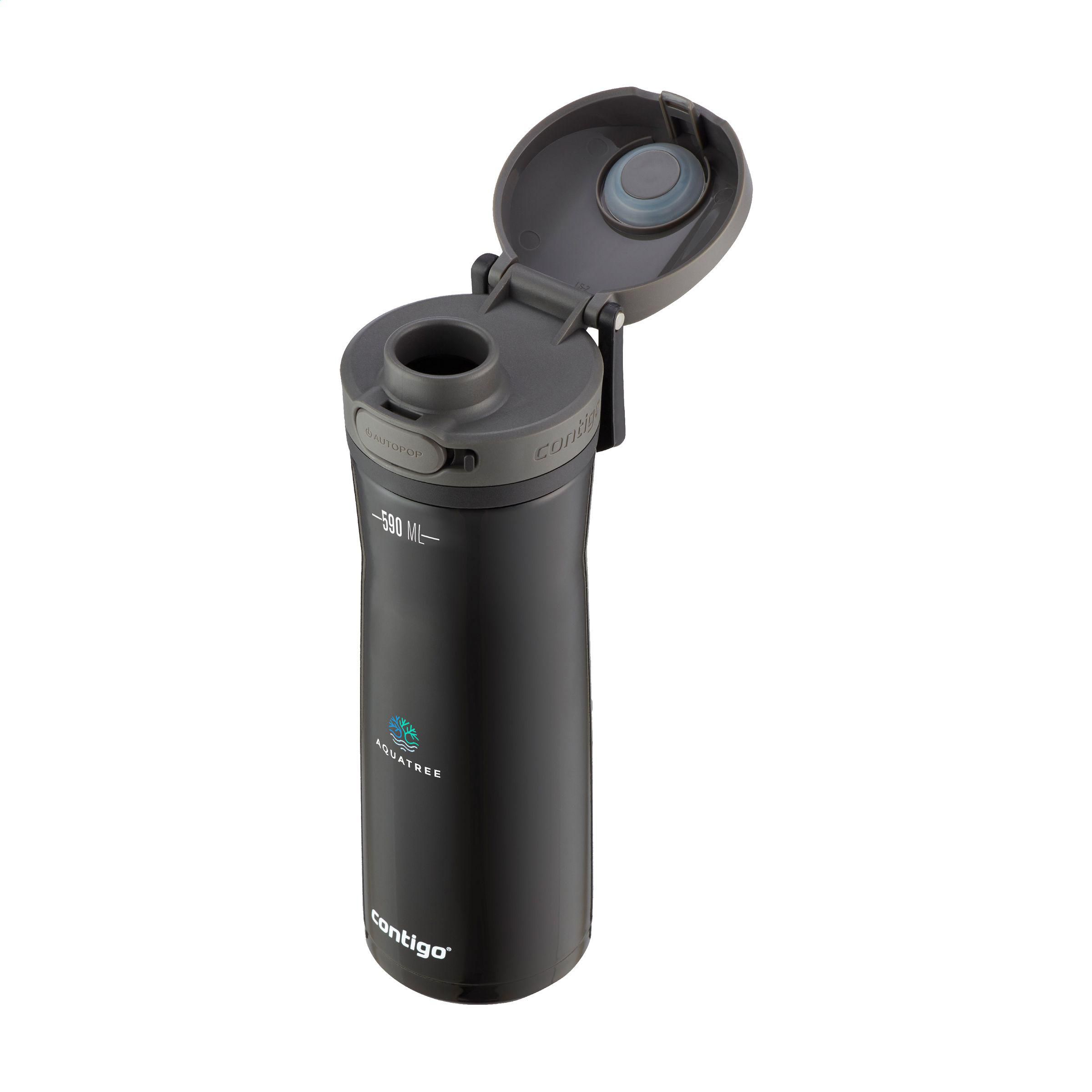 Doppelwandige, vakuumisolierte Contigo®-Wasserflasche aus Edelstahl mit AUTOPOP™-Technologie. Der Trinkverschluss ist geschlossen und somit vor Schmutz und Mikroben geschützt. Die Flasche ist nur für kalte, nicht karbonisierte Getränke geeignet. Diese bleiben bis zu 24 Stunden kalt. Dank des auslaufsicheren Designs verschüttest du nichts in deinem Auto, auf deinem Schreibtisch oder wo auch immer du bist. Mit dem integrierten Griff lässt sich die Flasche leicht transportieren. Passt in die meisten Getränkehalter. Die Flasche und der Deckel sind spülmaschinengeeignet (im oberen Korb stellen). Um den Aufdruck zu erhalten, wird Waschen von Hand empfohlen. Fassungsvermögen 590 ml.LAGERBESTANDSINFORMATION: Bis zu 1.000 Stück innerhalb von 10 Arbeitstagen verfügbar. Ausnahmen vorbehalten. Contigo: der Spezialist bei Qualität, Design und Technologie. Direkt erkennbar an dem schlichten und zeitlosen Design - haltbar und robust. Die innovativen Contigo Wasserflaschen und Thermobecher sind geruchs- und geschmacksneutral und BPA-frei. Die Trinkflaschen sind mit einer Hand zu bedienen und garantiert tropfsicher, so ist die überall und jederzeit nutzbar. Mit 2 Jahre Herstellergarantie.