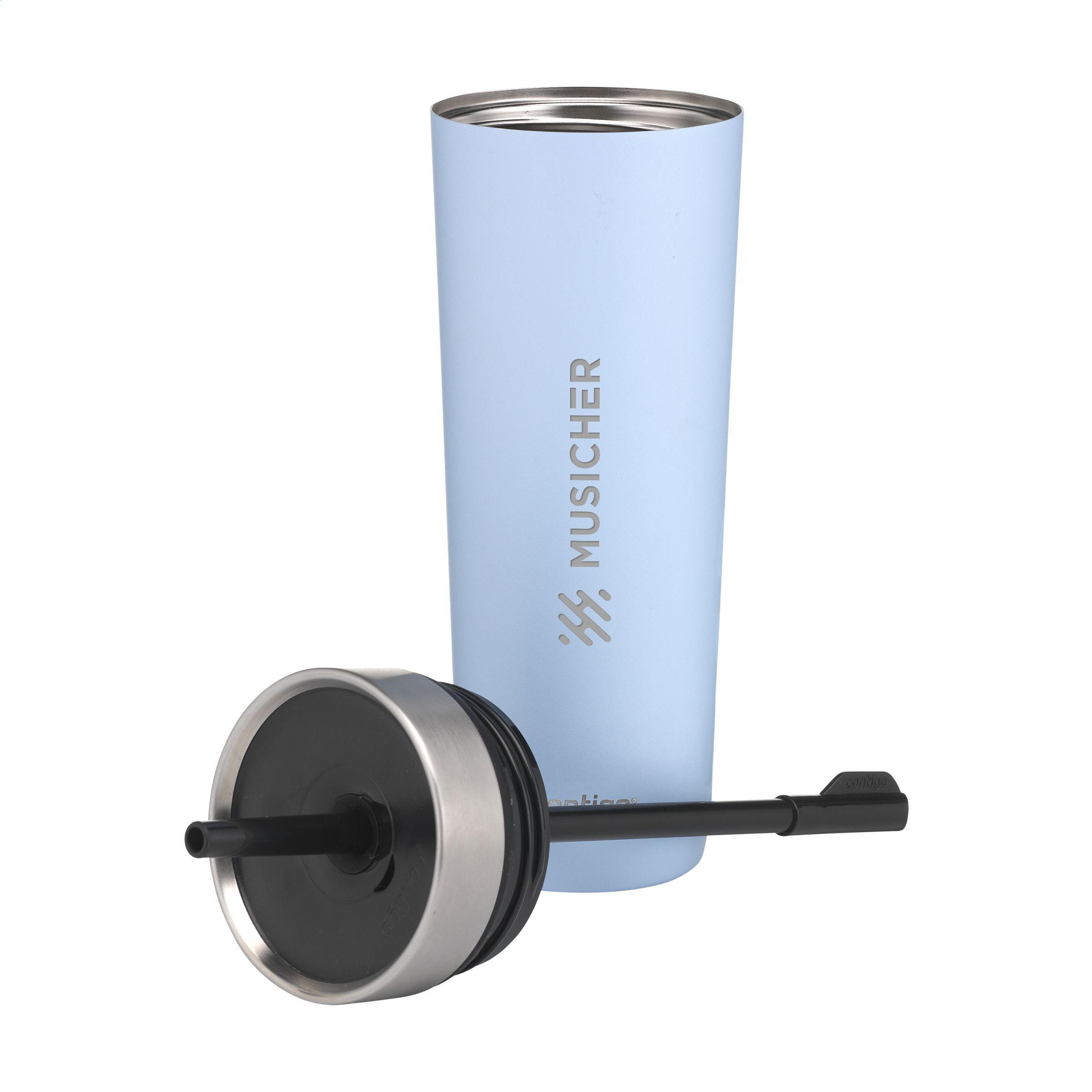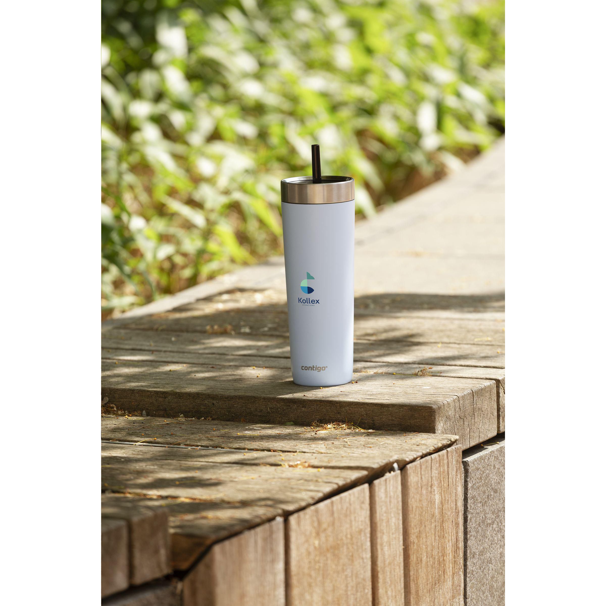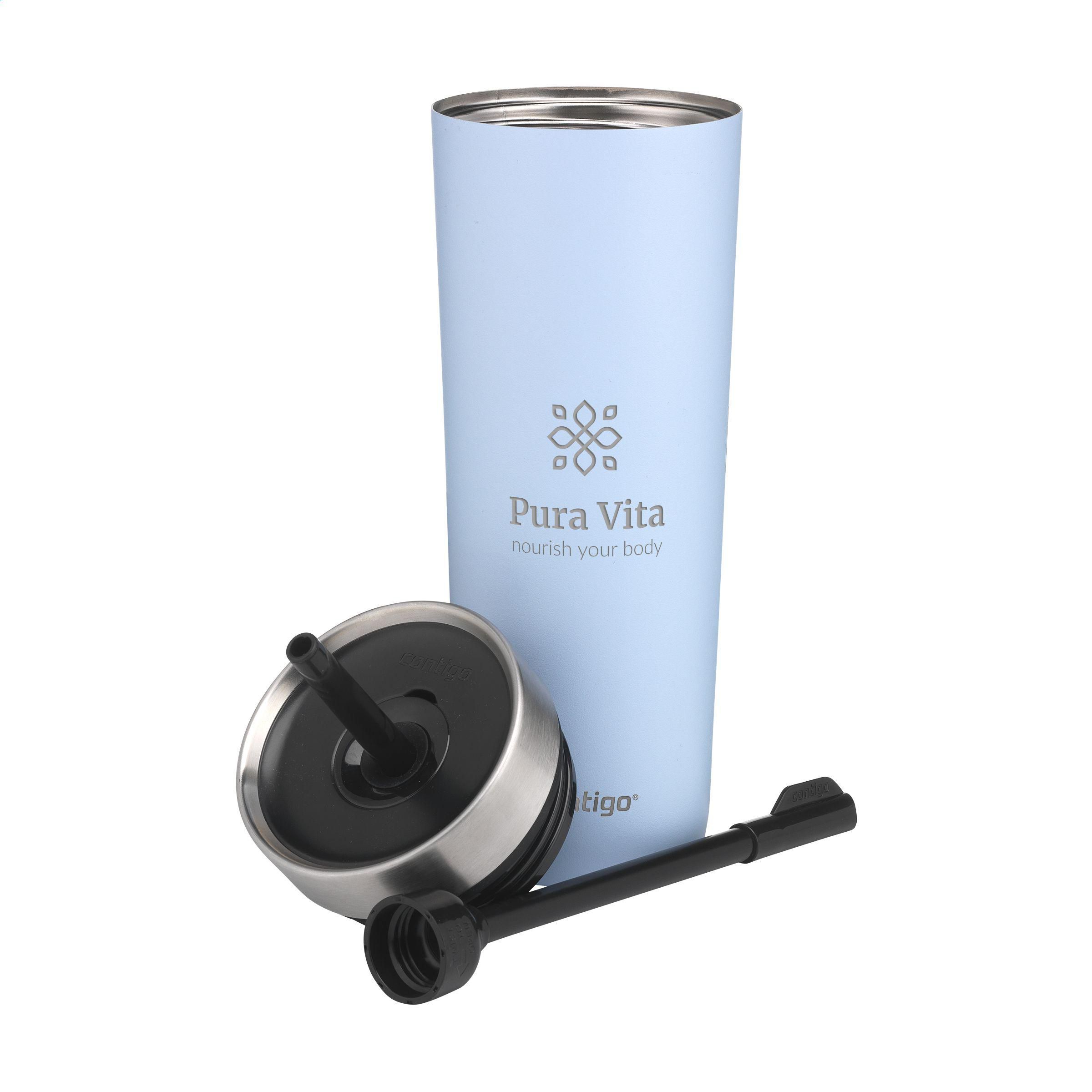 Großer, doppelwandiger, vakuumisolierter Contigo®-Trinkbecher aus Edelstahl. Der Kunststoff-Schraubdeckel ist mit Edelstahl veredelt. Das Innenventil und der dazugehörige Strohhalm machen diesen Becher 100% auslauf- und tropffrei. Nur für kalte Getränke geeignet (nicht für kohlensäurehaltige Getränke). Die THERMALOCK™-Technologie hält Getränke bis zu 14 Stunden lang kühl. Der Becher ist mit einer matten, kratzfesten Beschichtung versehen. Das schlanke, zeitlose Design passt in fast jeden Getränkehalter. Leicht zu reinigen. Der Becher, der Deckel und der Strohhalm sind spülmaschinengeeignet (in der oberen Korb stellen). Ein zeitloser Becher, der sich mühelos in Ihren aktiven Lebensstil einfügt. Fassungsvermögen 720 ml. LAGERBESTANDSINFORMATION: Bis zu 1.000 Stück innerhalb von 10 Arbeitstagen verfügbar. Ausnahmen vorbehalten. Contigo: der Spezialist bei Qualität, Design und Technologie. Direkt erkennbar an dem schlichten und zeitlosen Design - haltbar und robust. Mit 2 Jahre Herstellergarantie.