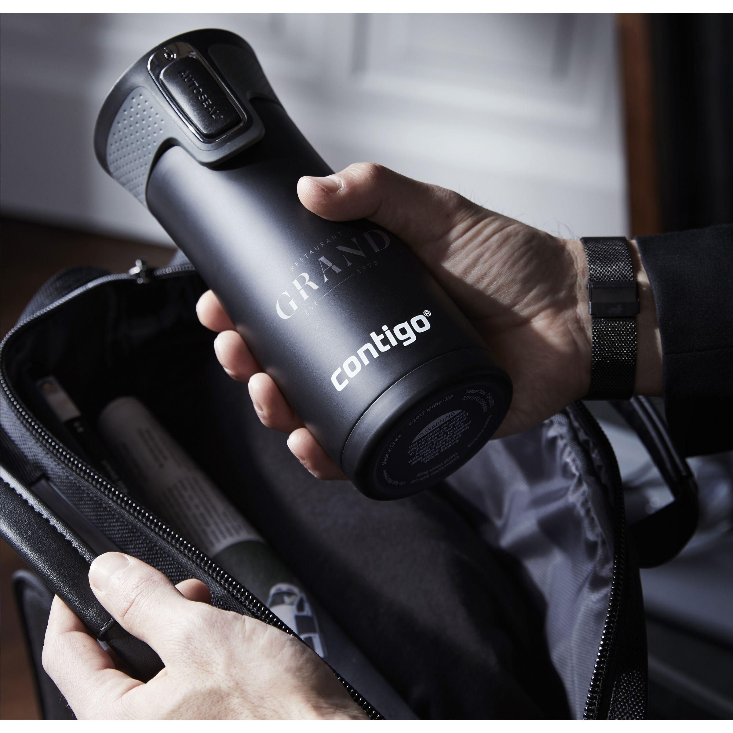 Doppelwandiger vakuumisolierte Thermobecher mit Innenwand aus rostfreiem Edelstahl. Ausgestattet mit AUTOSEAL™-Technologie (100% sicher vor Verschütten oder Auslaufen) und extra Sicherheitsverschluss. Die Trinköffnung schließt sich automatisch nach jedem Schluck. Die THERMALOCK™-Technologie hält Getränke bis zu 12 Stunden kalt oder bis zu 5 Stunden warm. Nur der Deckel ist spühmaschinengeeignet (in der oberen Korb stellen). Spülen Sie den Becher mit der Hand. Fassungsvermögen: 470 ml. LAGERBESTANDSINFORMATION: Bis zu 1.000 Stück innerhalb von 10 Arbeitstagen verfügbar. Ausnahmen vorbehalten. Contigo: der Spezialist bei Qualität, Design und Technologie. Direkt erkennbar an dem schlichten und zeitlosen Design - haltbar und robust. Die innovativen Contigo Wasserflaschen und Thermobecher sind geruchs- und geschmacksneutral und BPA-frei. Mit 2 Jahre Herstellergarantie.