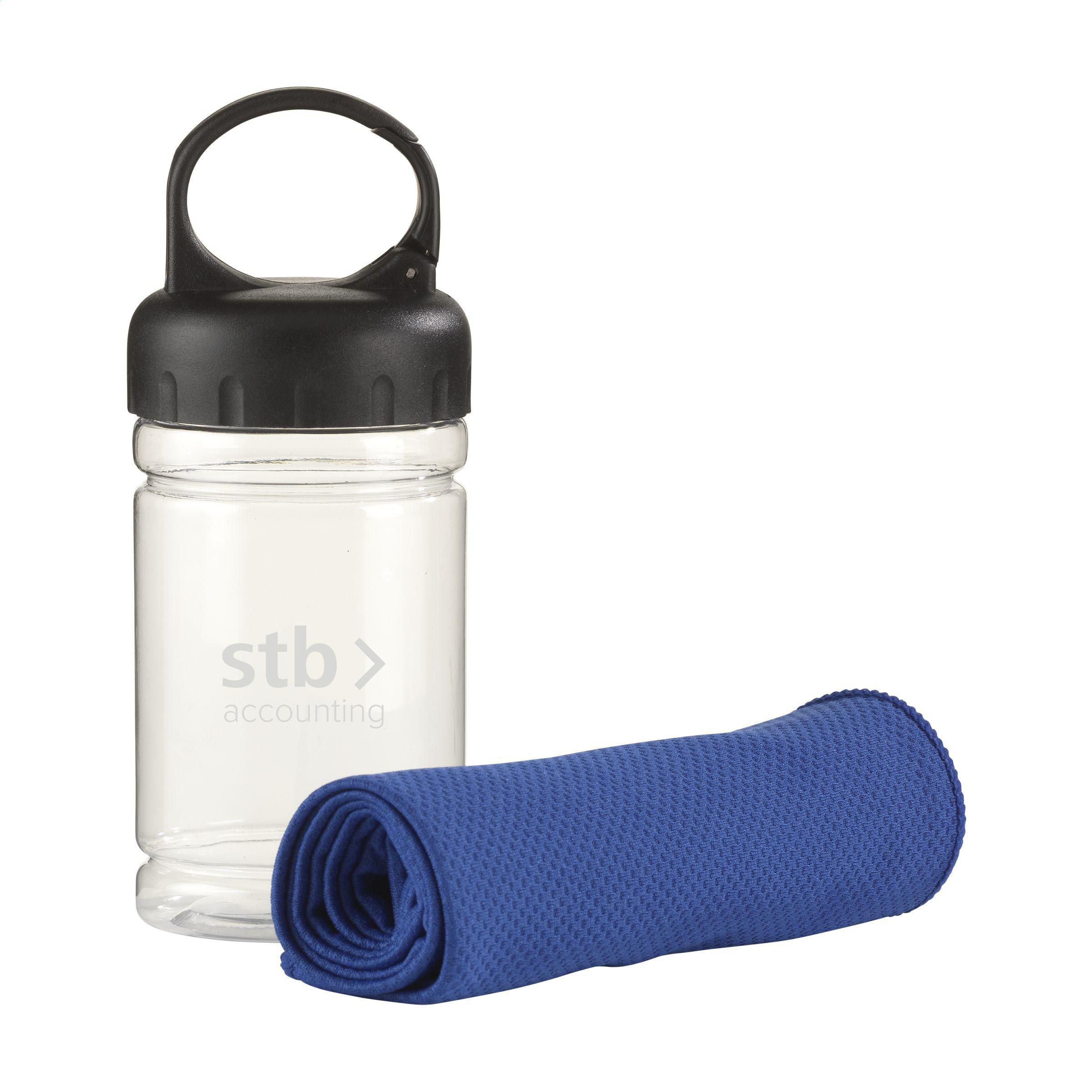 Spezielles Kühlhandtuch aus 100 % Polyester. Nach dem Eintauchen in kaltes Wasser kann dieses Handtuch bei sportlichen Aktivitäten oder Sonnenbrand kühlen. Maße 30 x 80 cm. Ideales Format, um es zur Kühlung im Nacken zu tragen. In transparentem Gehäuse mit ABS-Schraubverschluss mit Karabinerhaken.