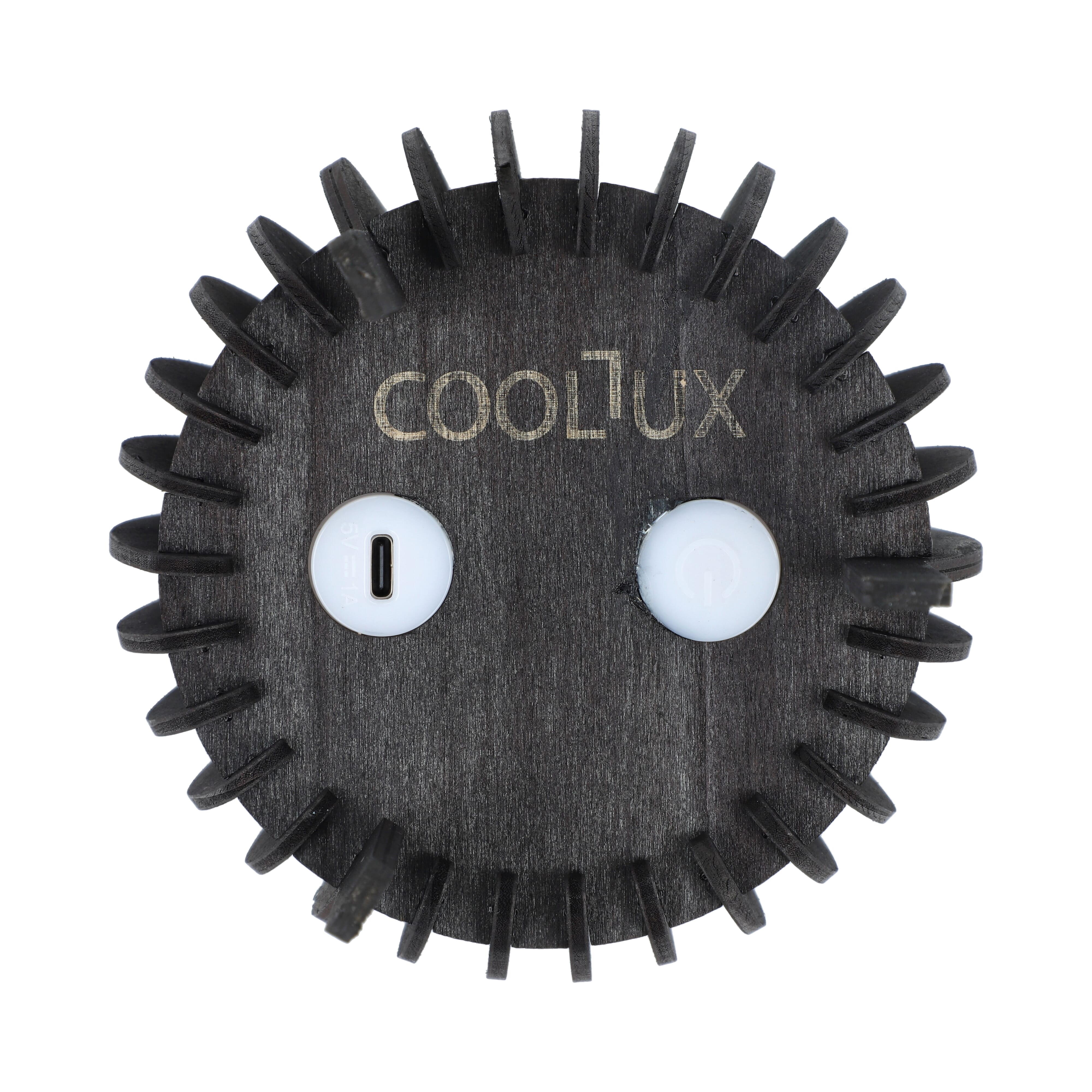 Die Coollux Lamella Sol verbindet ein raffiniertes Design mit dem unverkennbaren Coollux-Look. Sie zeichnet sich durch markante, abgerundete vertikale Holzlamellen aus. Das farbwechselnde LED-Licht kann auf Ihre Lieblingsfarbe eingestellt werden. Sie besteht aus teilweise recycelten Materialien und verfügt über einen wiederaufladbaren Akku und ein Ladekabel.