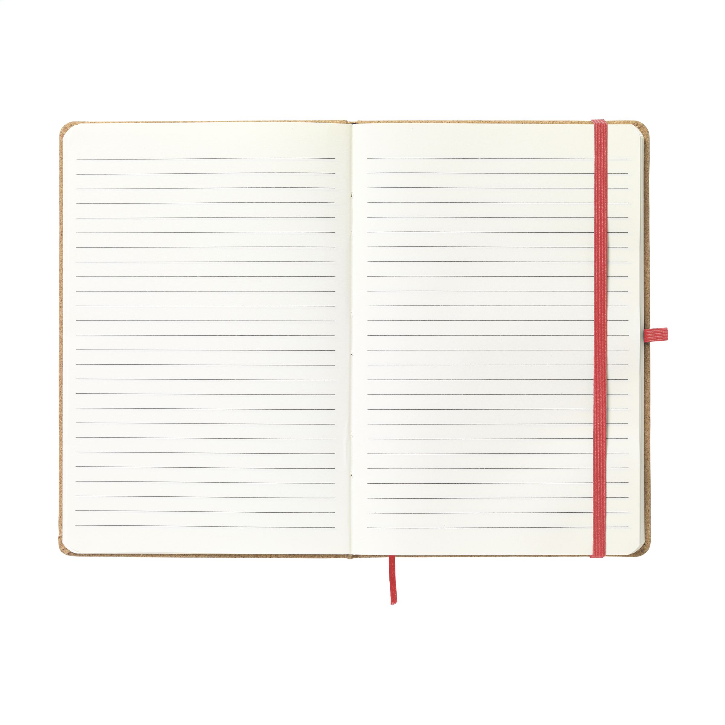 Notizbuch im A5-Format aus Kork. Mit ca. 80 Blatt/160 Seiten cremefarbenem, liniertem, FSC Mix zertifiziertem Papier (70 g / m²). Mit praktischem Stiftfach, elastisch und gebunden.
