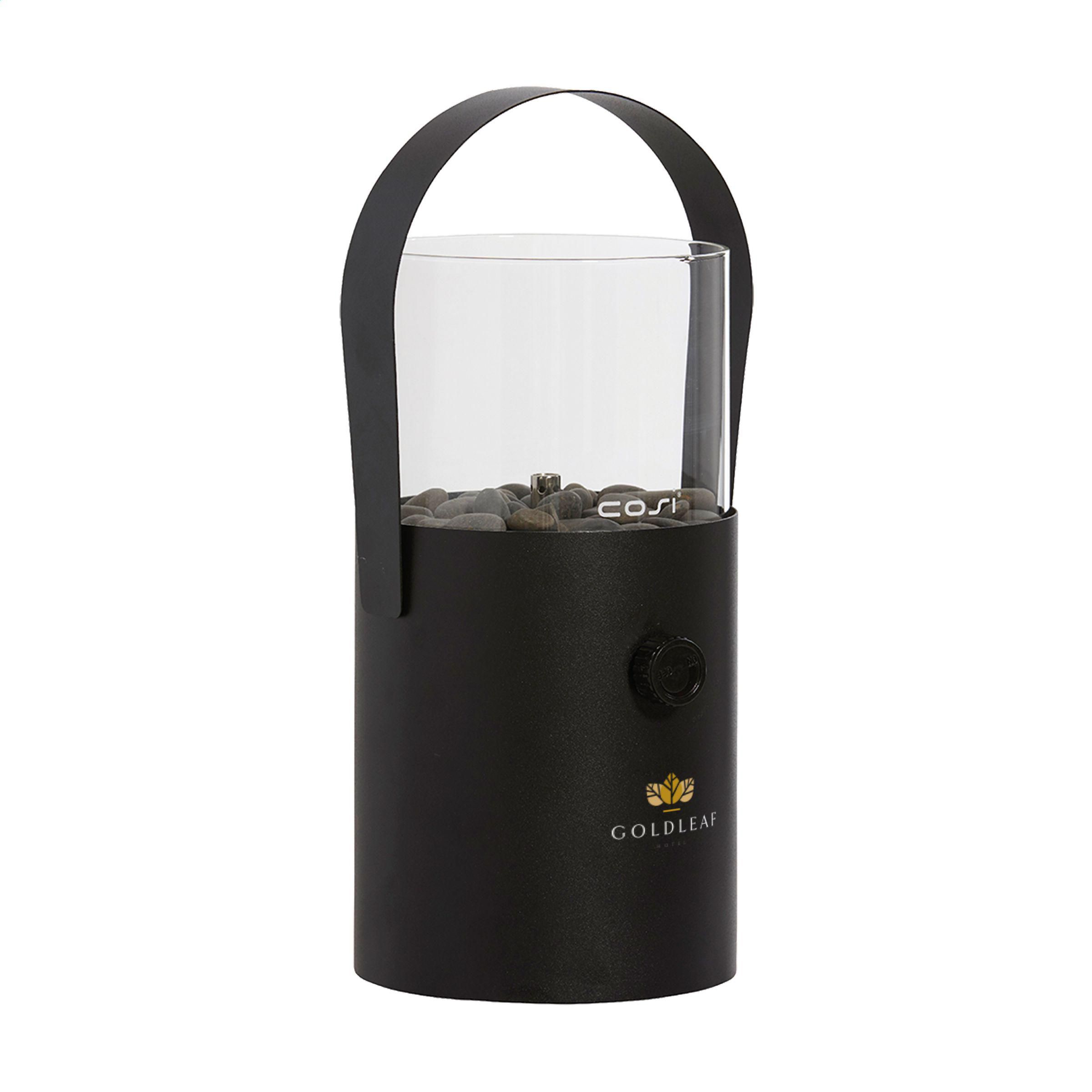 Gaslaterne der Marke Cosi. Diese Gaslaterne ist aus robustem Metall gefertigt und mit einer Pulverbeschichtung und einem transparenten Glas versehen. Ein einzigartiger Stimmungsmacher für den Garten und das Haus. Dieses luxuriöse Tischmodell kann dank des praktischen Tragegriffs überall aufgestellt werden. Die Laterne wird mit einer 190 Gramm schweren Propan/Butan-Gaskartusche betrieben (nicht im Lieferumfang enthalten). Brenndauer: 5 bis 6 Stunden mit einer Gaskartusche. Inklusive transparentem Glas und Kieselsteinen.