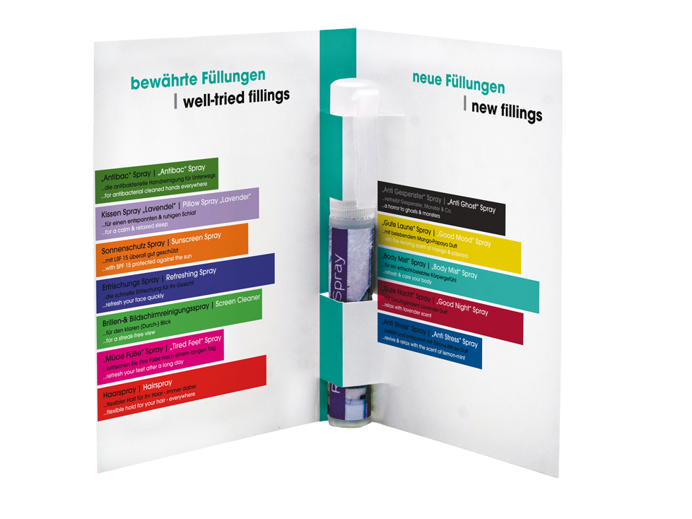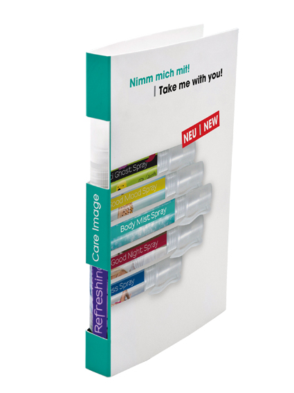 Made in Germany. Karton-Umschlag mit Halterung für den Spray Stick. Inkl. Konfektionierung, exkl. Spray Stick. Inkl. individuellem 4c-Druck. Druckvorkosten bereits inklusive. Auch Sonderformen möglich - sprechen Sie uns an.