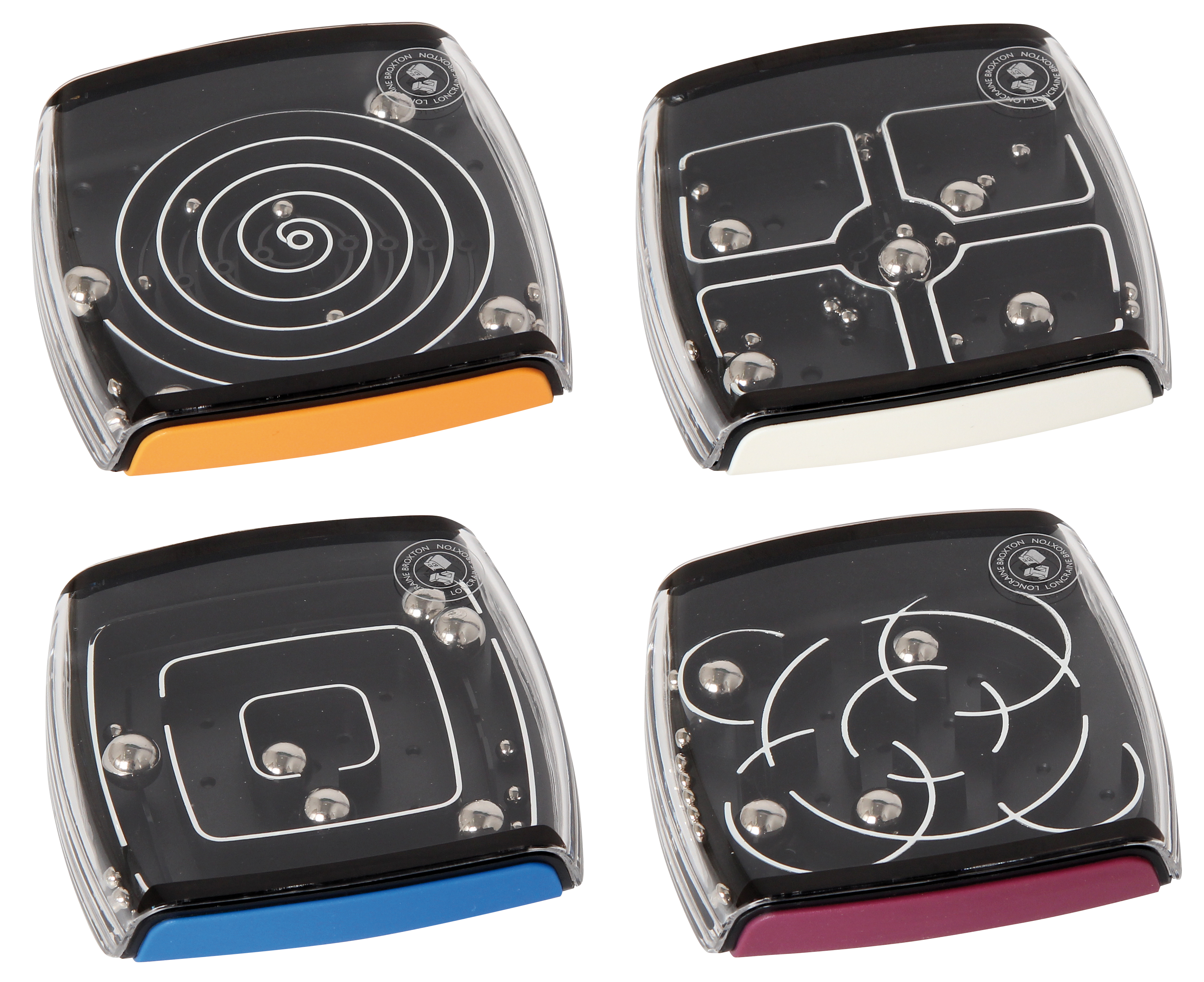 Kniffliges Geschicklichkeitsspiel in hochwertiger Ausführung. Kleine Metall-Kugeln sollen an ihren vorgesehenen Platz gebracht werden. Aber so einfach ist das gar nicht! Es erfordert Geschicklichkeit und viel Geduld. Verschiedene Motive verfügbar: Kreislabyrinth, Fadenkreuz, Quadrat oder Kreise.