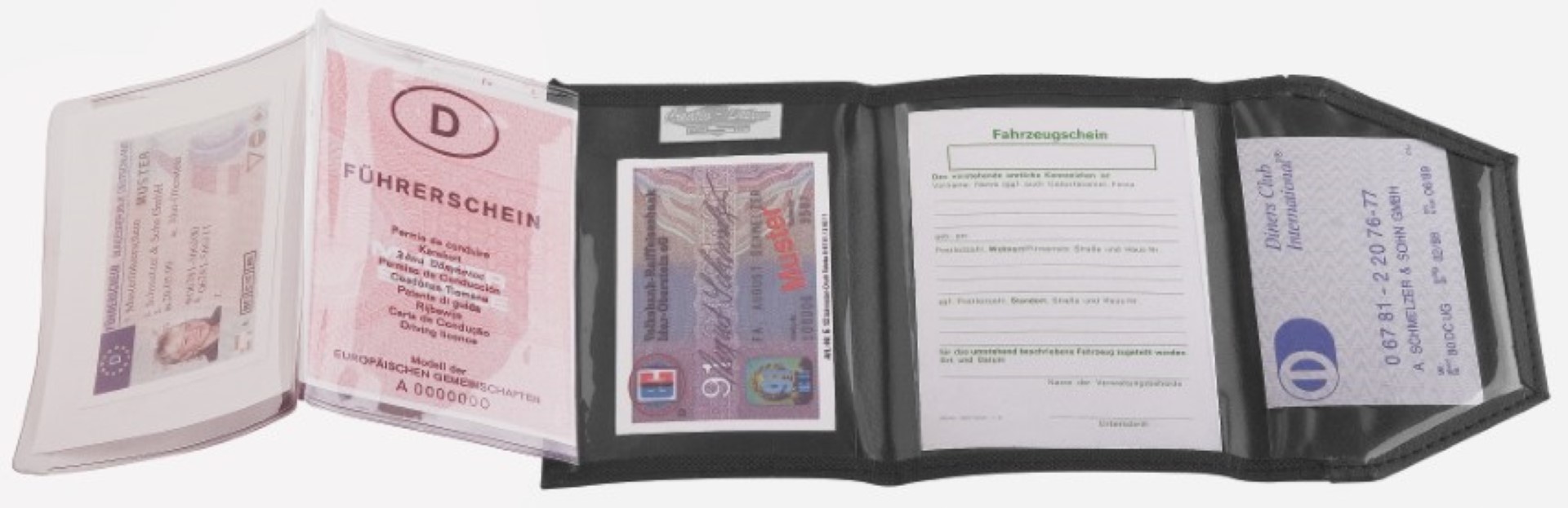 Ausweistasche in ansprechendem Nylon / PU-Mix mit ColourStripe. Gebugt, gefüttert, VPE 300. 5 Klarsichtfächer