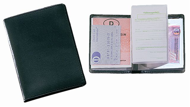 Ausweistasche aus glatter Lederfaser bei gleichbleibender Qualität und Farbe. Offenkantig, VPE 500. 2 Klarsicht- und 2 Kartenfächer + 3er Klarsicht