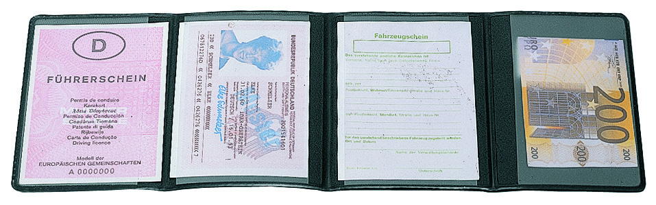 Beidseitig ausklappbare Ausweistasche, Strukturklarsicht- und Starfolie. VPE 300. 8 Fächer