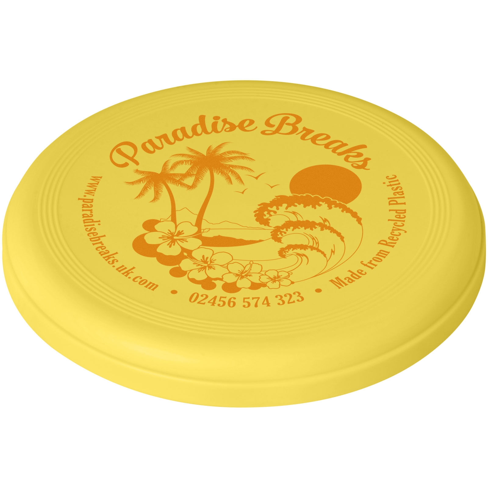 Stabiler Wurfscheibe aus recyceltem post-consuper Kunststoff. Das Material hat aufgrund der Beschaffenheit des recycelten Materials eine gesprenkelte Oberfläche. EN71-konform. Nicht für Kinder unter drei Jahren geeignet. Durchmesser: 18 cm.