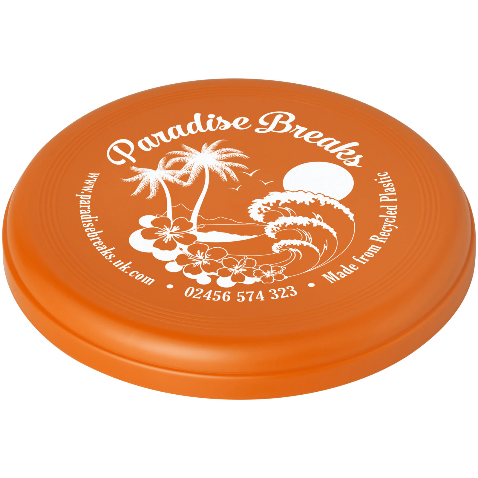 Stabiler Wurfscheibe aus recyceltem post-consuper Kunststoff. Das Material hat aufgrund der Beschaffenheit des recycelten Materials eine gesprenkelte Oberfläche. EN71-konform. Nicht für Kinder unter drei Jahren geeignet. Durchmesser: 18 cm.