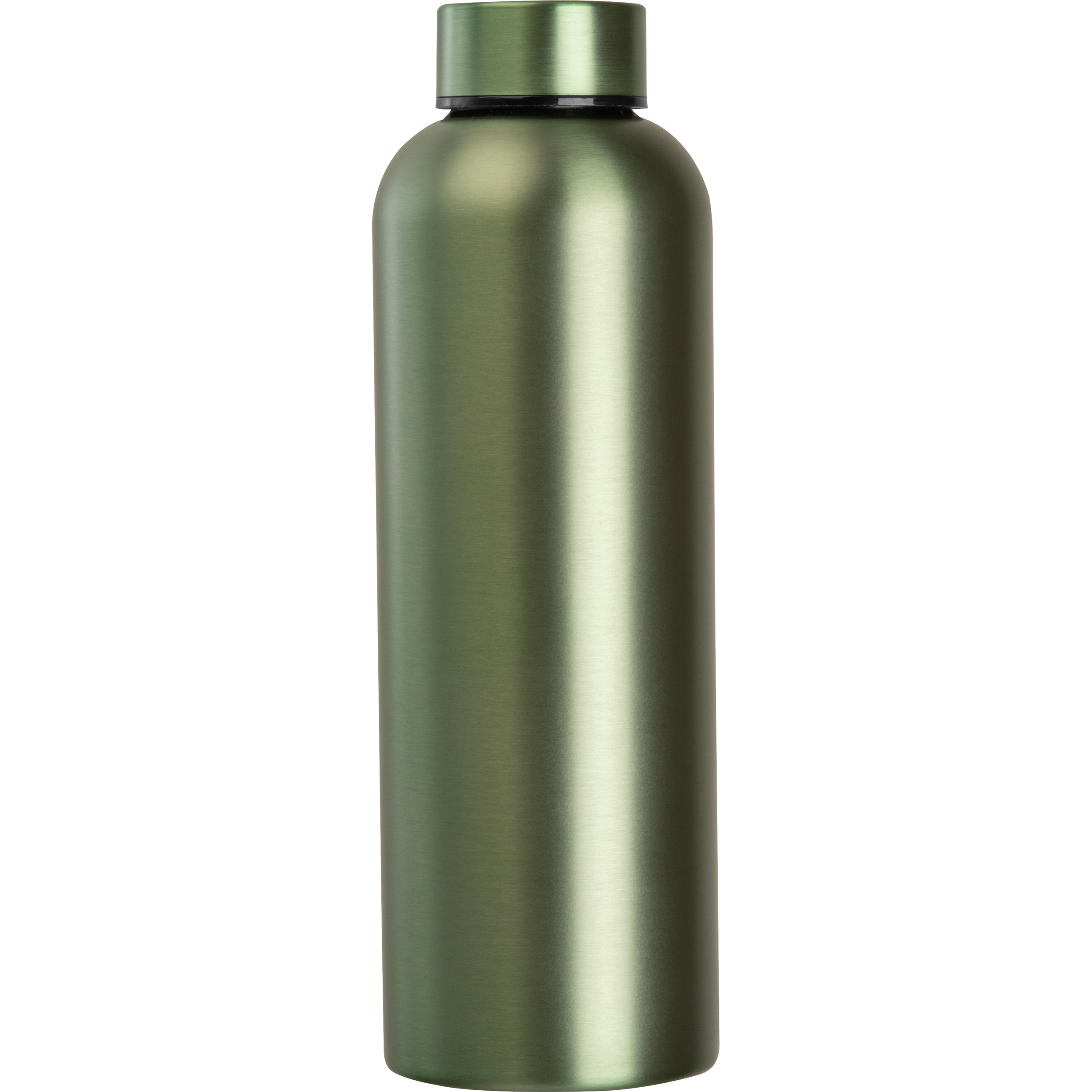 Auslaufsichere Trinkflasche aus recyceltem Edelstahl mit einem Füllvermögen von 700ml und einem Drehverschluss. Geliefert wird diese Flasche in einer schwarzen Box. Ihre Werbung wird auf die Flasche graviert.