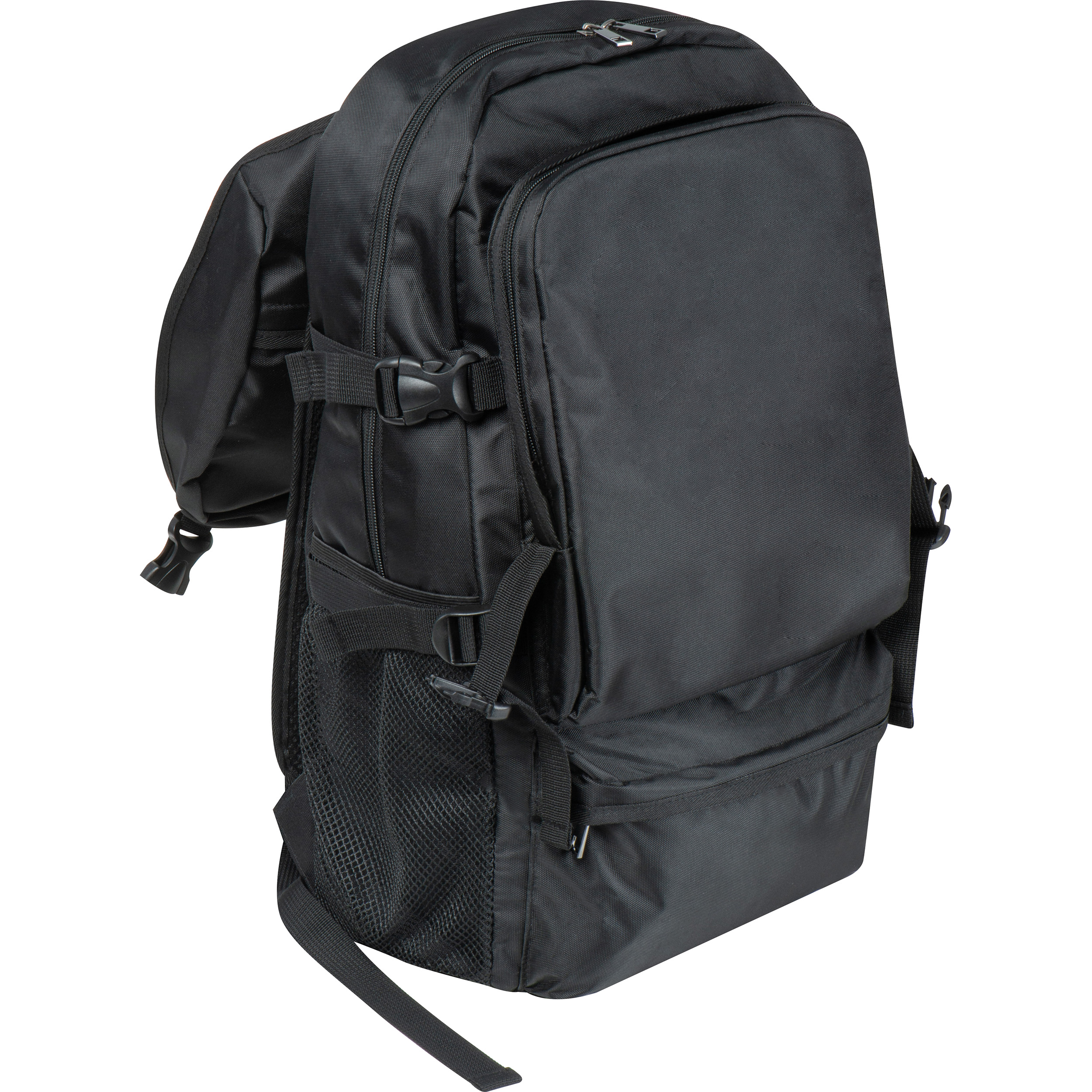 Großer Rucksack aus Polyester mit gepolsterten Schultergurten und ergonomisch geformten Rückenteil, Laptopfach, großem Vorfach und kleinem Reißverschlussfach im Überschlag. Die zusätzlichen Fixiergurte sorgen für optimalen Halt. Kapazität: 25 Liter. Ihre Werbung drucken wir auf den Überschlag.