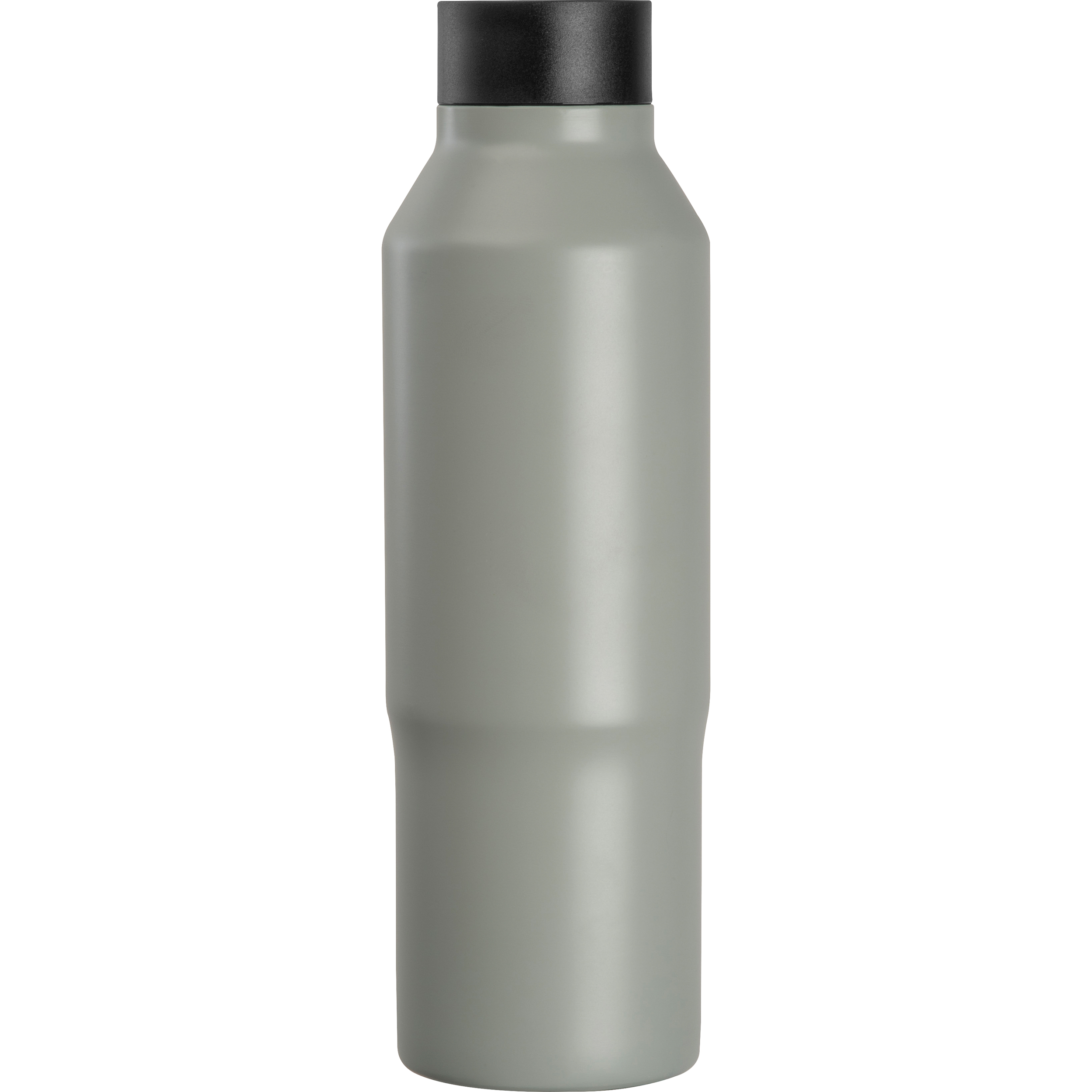 Große doppelwandige Vakuum Trinkflasche aus recyceltem Edelstahl mit auslaufsicherem Verschluss und einem Füllvermögen von 600ml. Geliefert wird diese Flasche in einer schwarzen Box. Ihre Werbung wird auf die Flasche graviert.