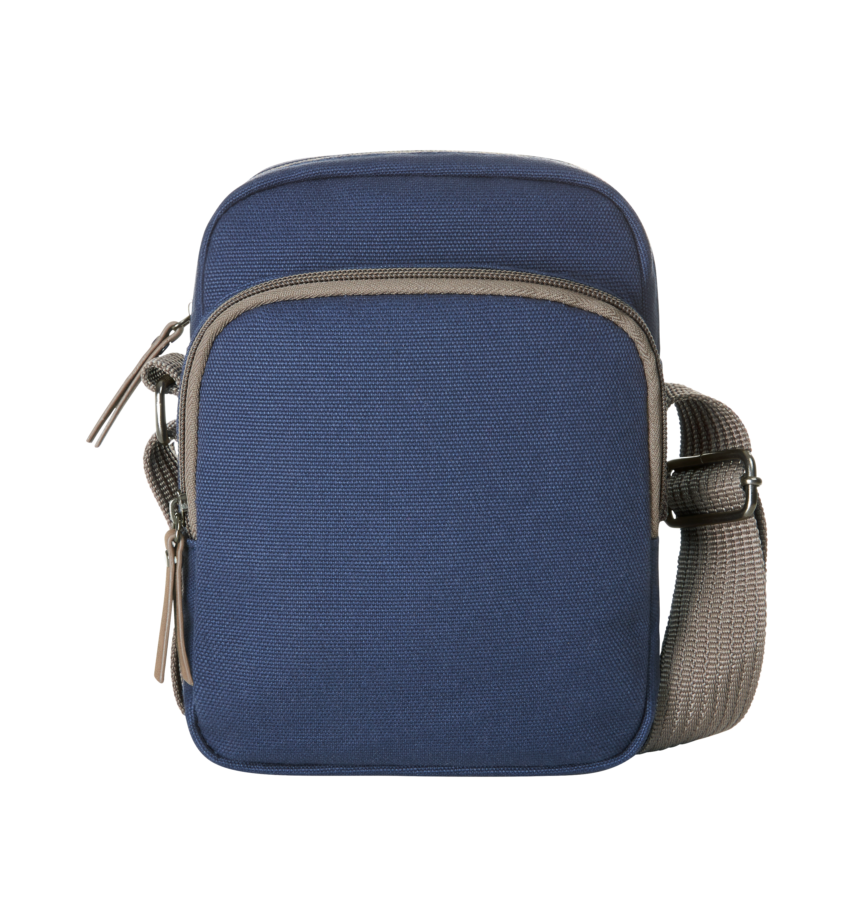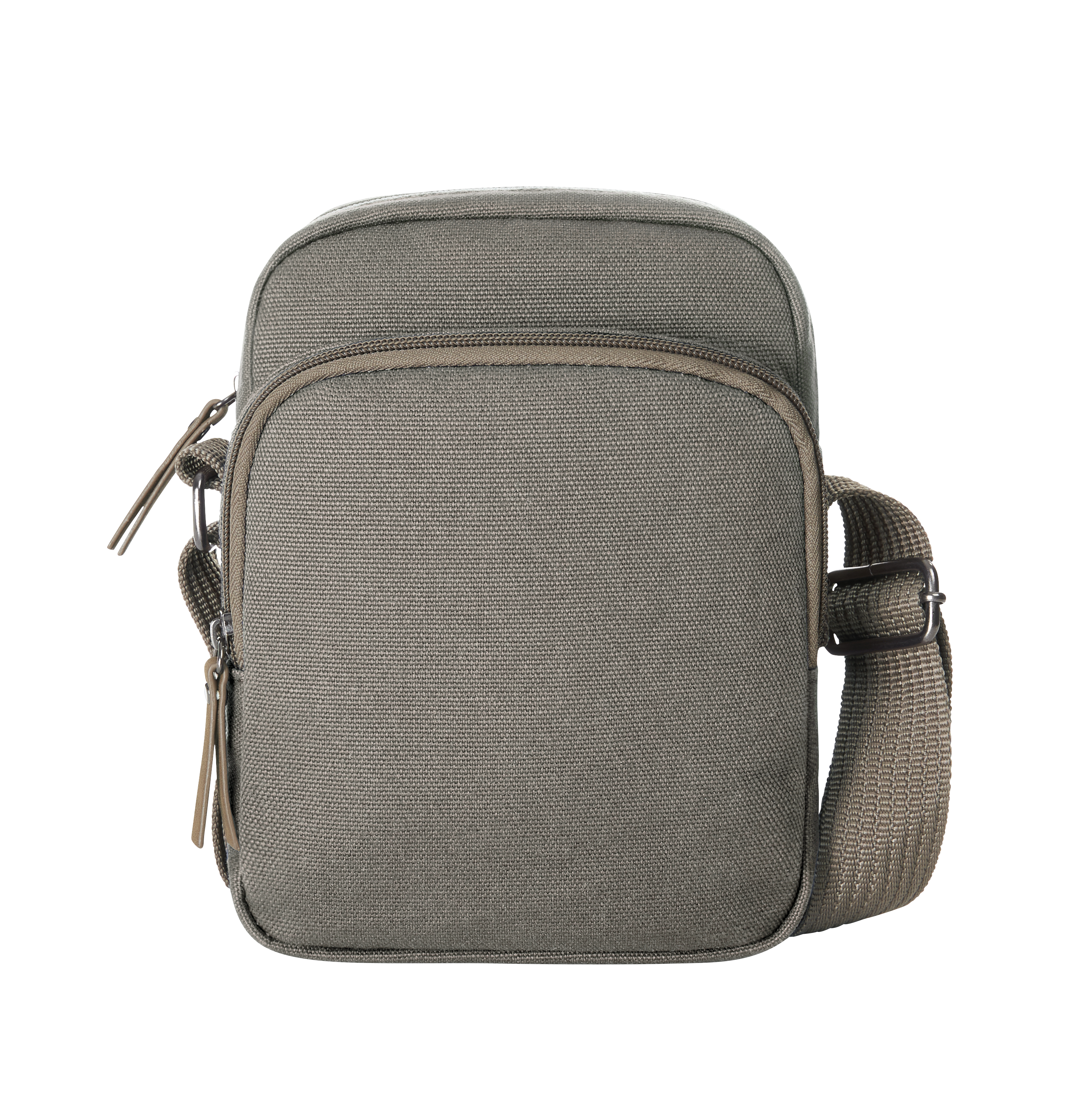 Kleine, moderne Umhängetasche; teilgepolstertes Reißverschluss-Hauptfach; Reißverschluss-Vortasche; rückseitig flaches Einsteckfach; wertige Metallaccessoires; längenverstellbarer Schultergurt