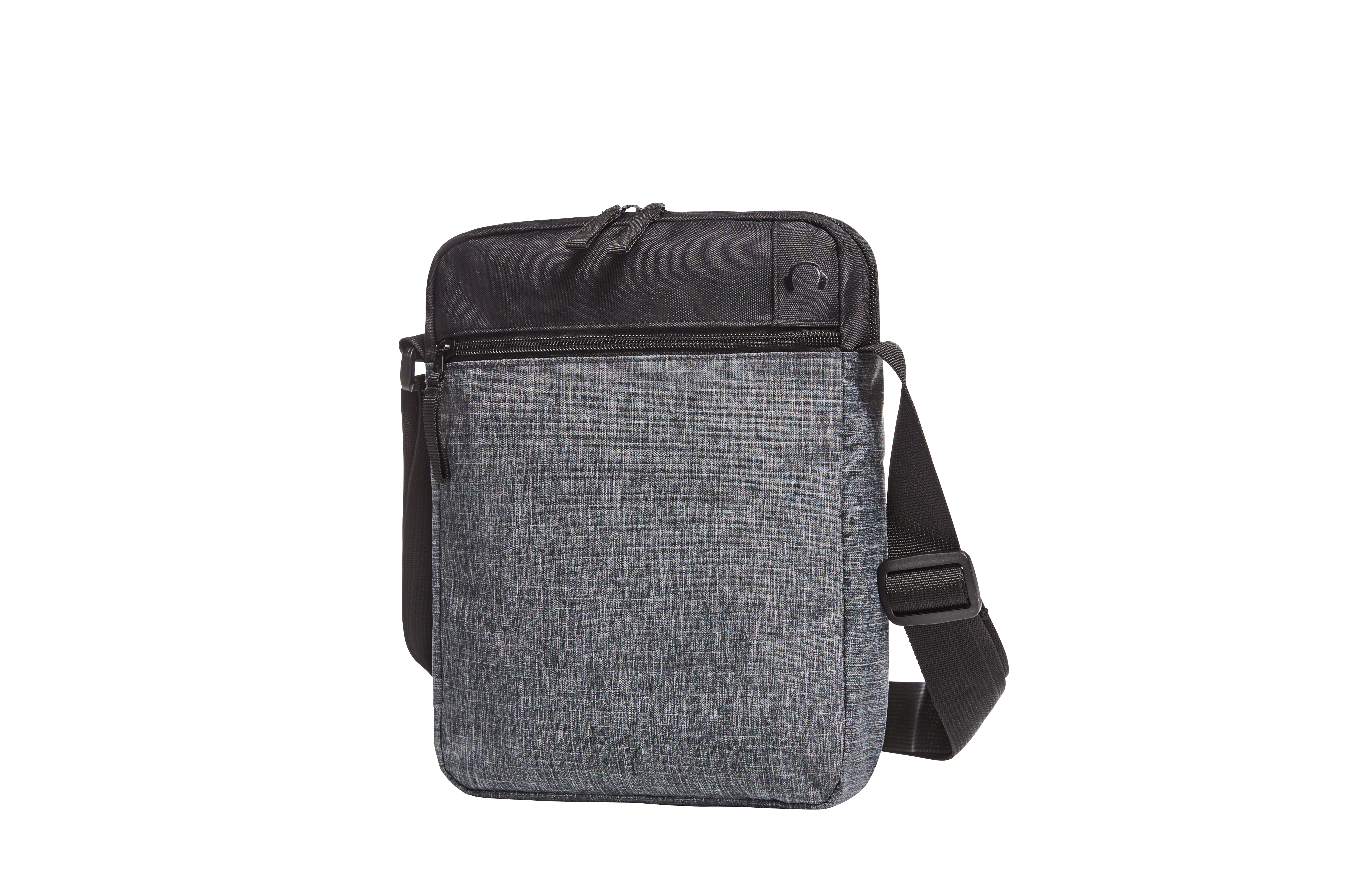 Kleine, funktionelle Umhängetasche; Hauptfach mit 2-Wege-Reißverschluss und Organizer-Elementen; gepolsterter Rücken; gepolstertes, flaches Einsteckfach für z. B. Tablets; Kopfhörerausgang; Reißverschluss-Vortasche; längenverstellbarer Schultergurt