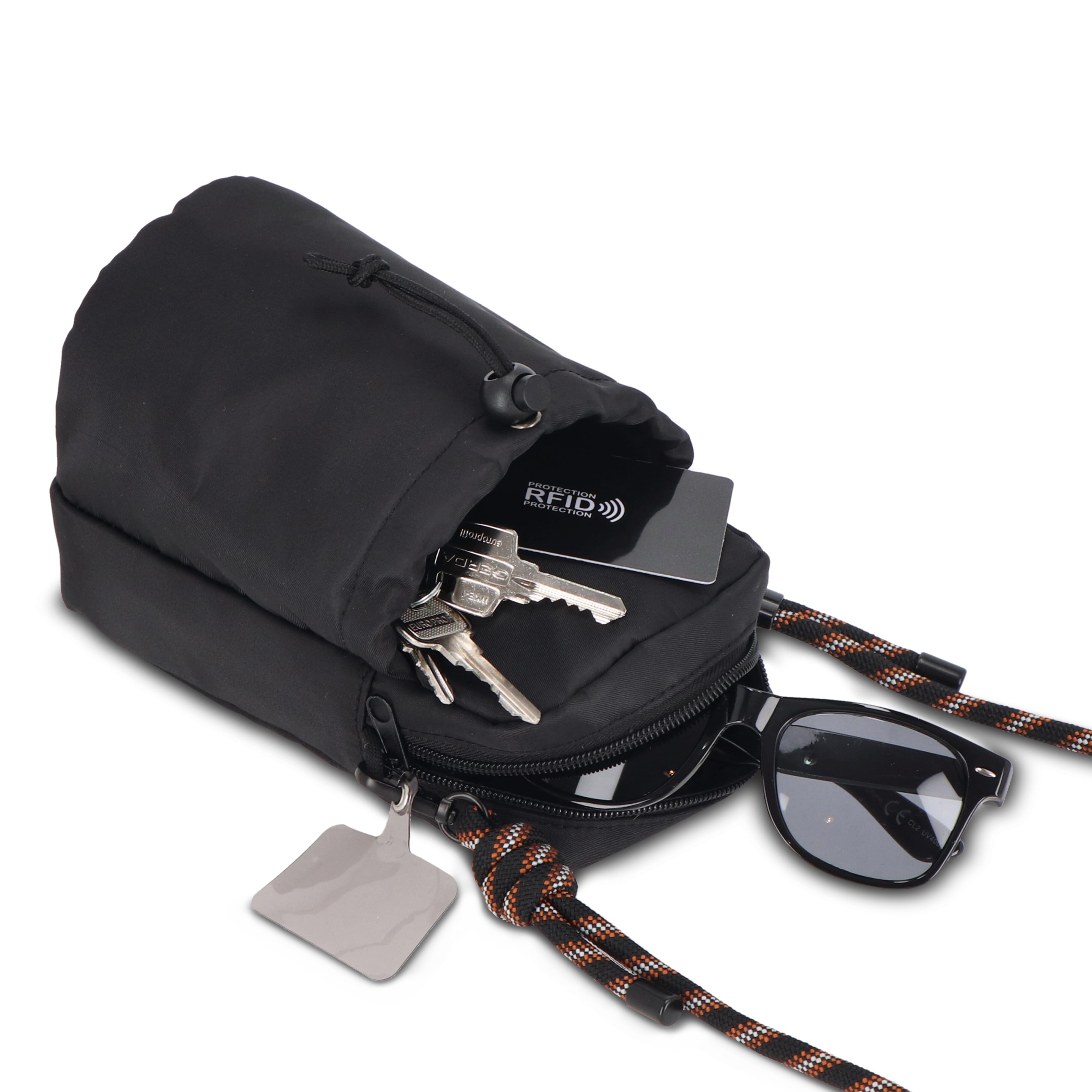 Diese vielseitige Tasche eignet sich perfekt für den Transport von Wasserflaschen und anderen Alltagsgegenständen wie Telefon, Schlüssel und Geldbörse. In der vorderen Tasche können die meisten 500-ml-Flaschen sicher und griffbereit aufbewahrt werden. Die Tasche ist anpassungsfähig und lässt sich mit der mitgelieferten Lasche auch in ein Handykette verwandeln.