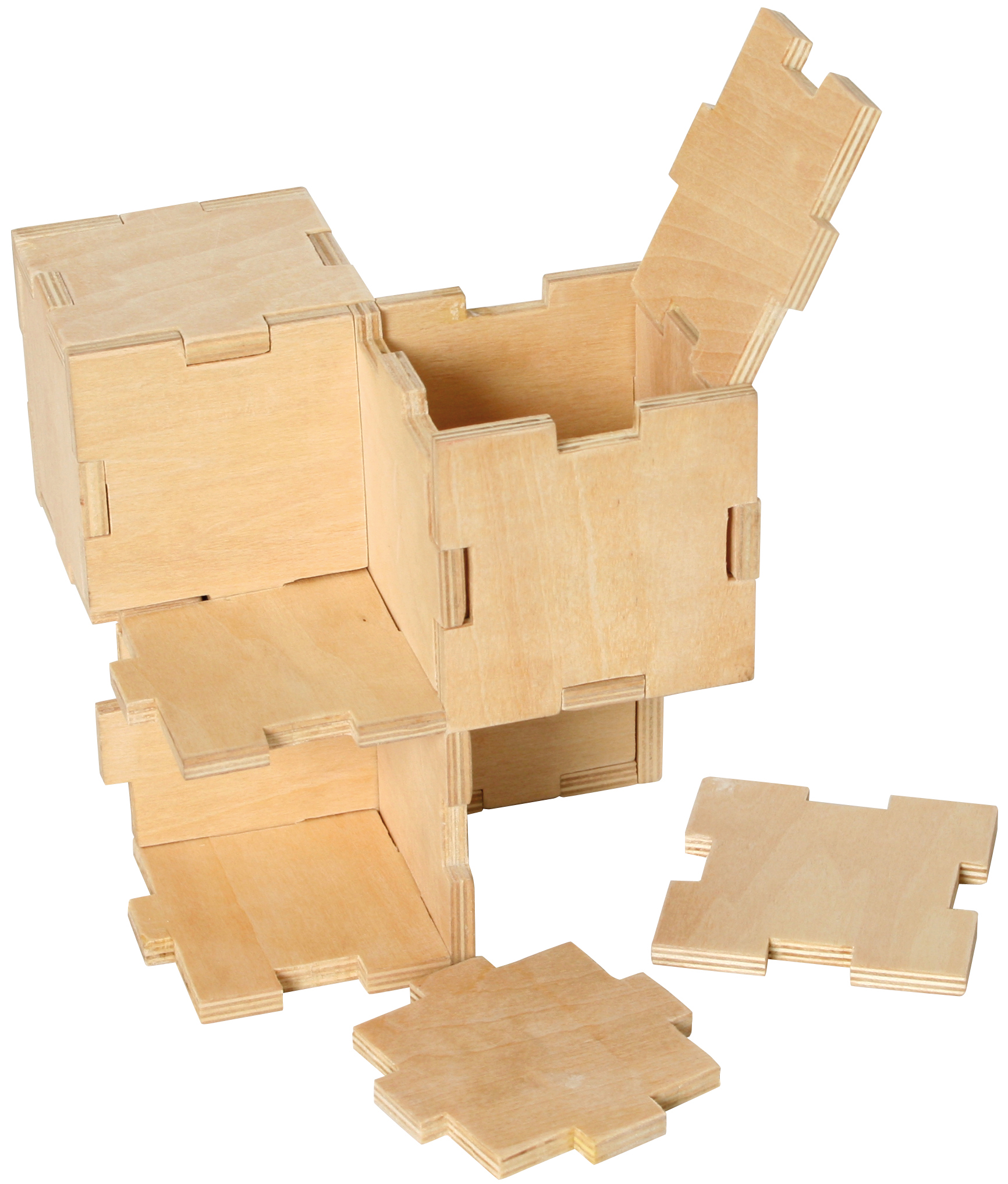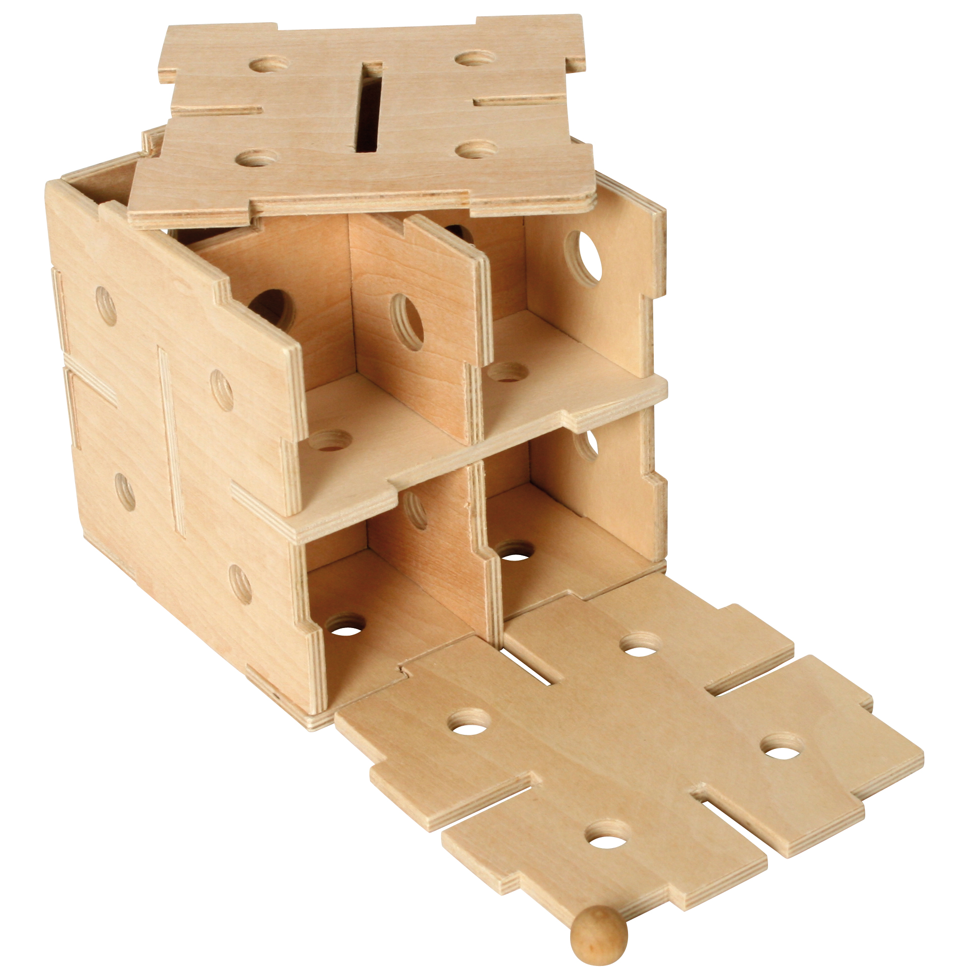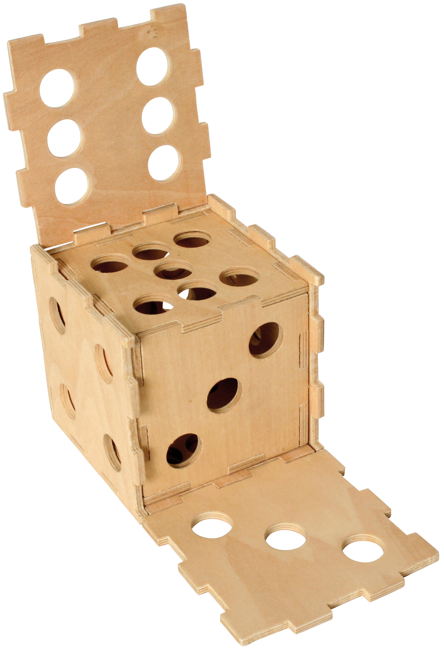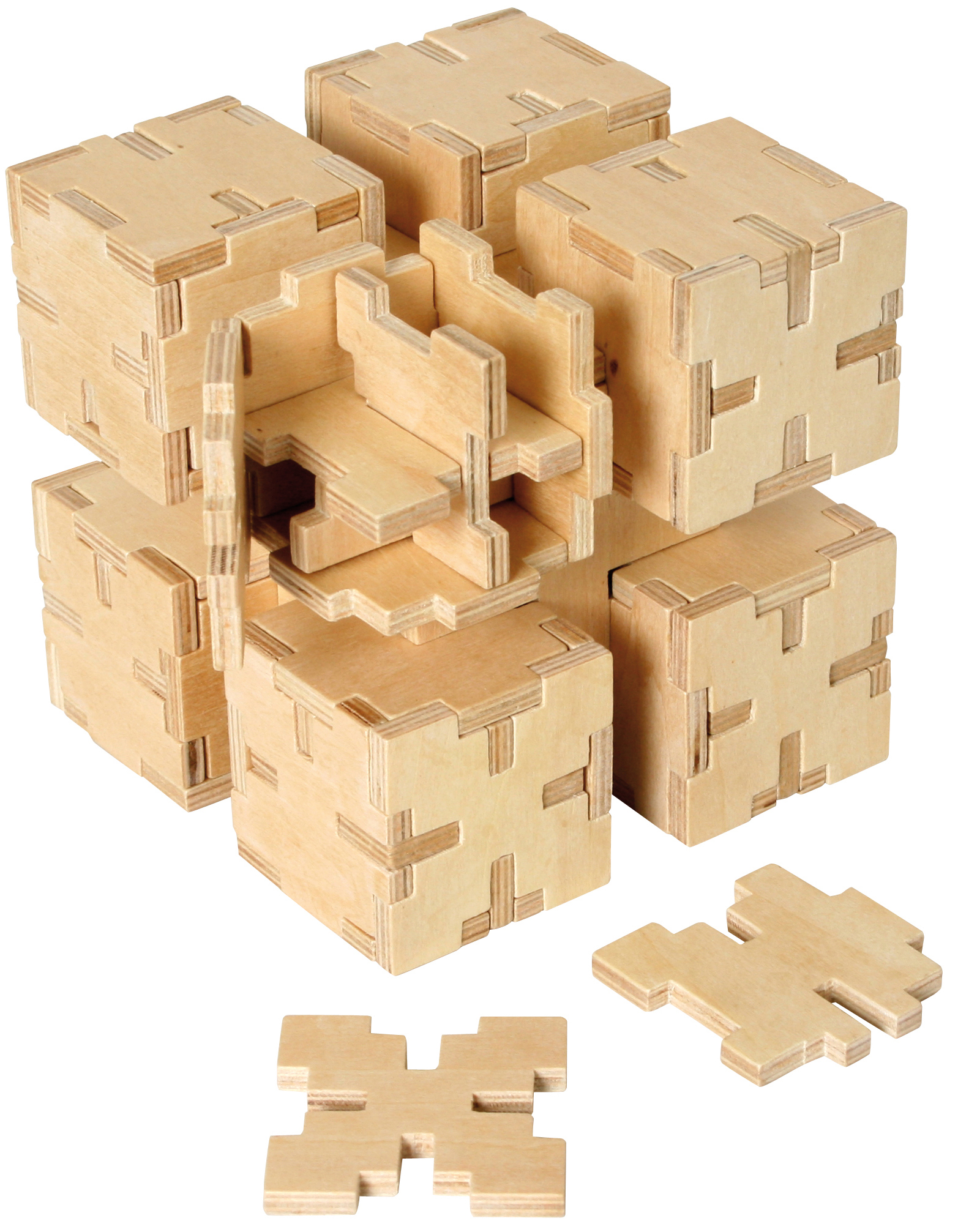 Vier Motive sortiert: Double Twins, Dice in Dice, Cubical Labyrinth, Stacked Cubes. Siehe Art.-Nr. 101122, 101123, 101124 und 101125! Aus Holz. In Geschenkverpackung. Puzzlegröße: 10 x 10 x 10 cm. Ab 8 Jahren. Double Twins: Zerlegen und wieder zusammenbauen. Dice in Dice: Die Würfel müssen so zusammengebaut und der kleine im großen platziert werden, dass der große Würfel ein regulärer Augenwürfel wird. Cubical Labyrinth: a) Zerlegen und wieder zusammenbauen. b) Lassen Sie eine Holzkugel durch das Labyrinth im Innern rollen und durch das große Loch wieder herauskommen. Stacked Cubes: Zerlegen und wieder zusammenbauen.