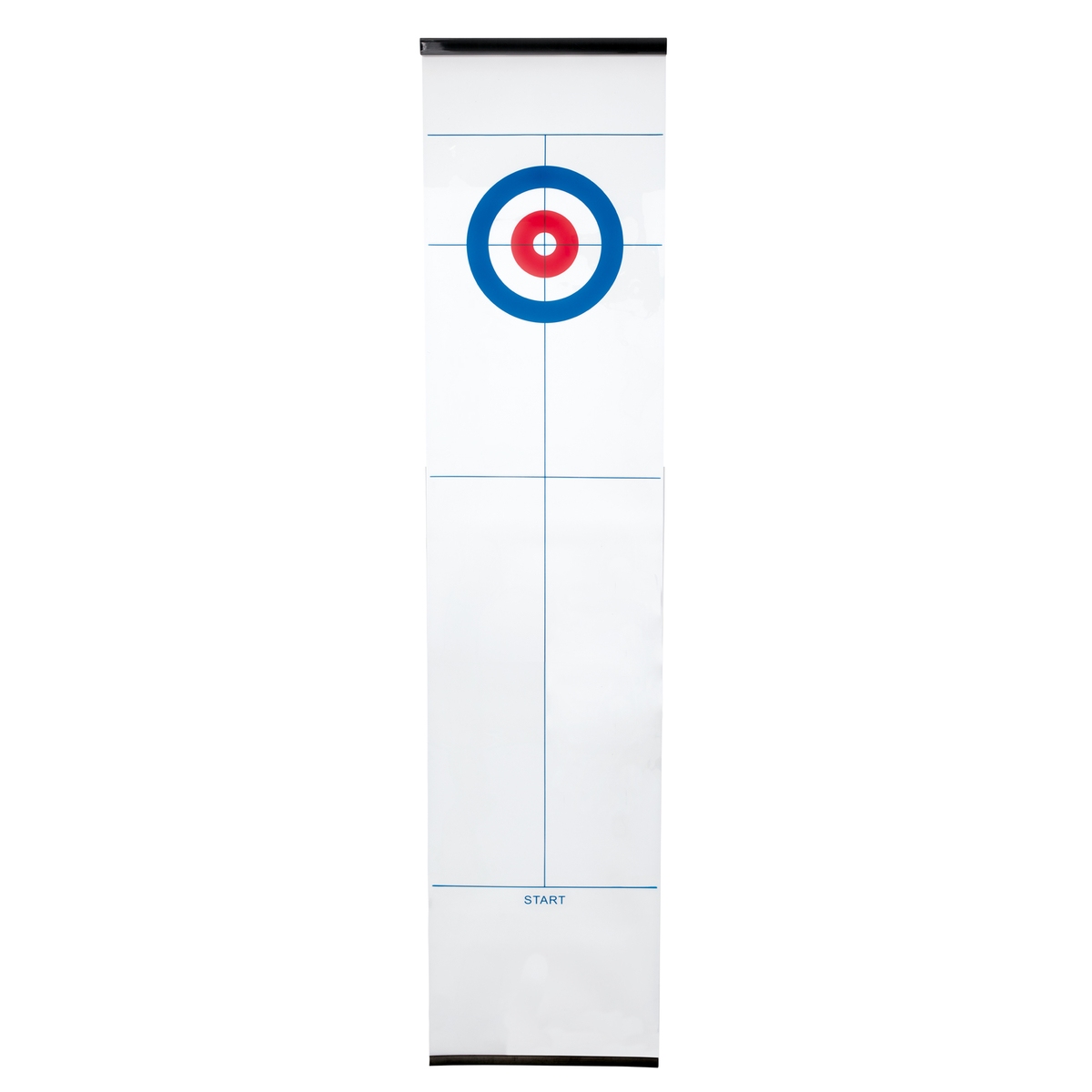 Wettbewerbsfeeling im Büro - Nur das beste Team gewinnt! Wo sonst bei eisigen Temperaturen in Schal und Mütze gekämpft wird, reicht jetzt ein Plätzchen auf dem Schreibtisch. Wie beim echten Curling platzieren zwei Teams oder Spieler die Steine so nah am Zentrum, wie sie können. Wer den anderen aussticht, gewinnt. 8 Spielsteine und zwei Reinigungsschwämme für die Folie sind inklusive.