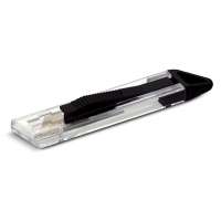 Cuttermesser aus Kunststoff mit Federkernautomatik, transparent, gefrostet.