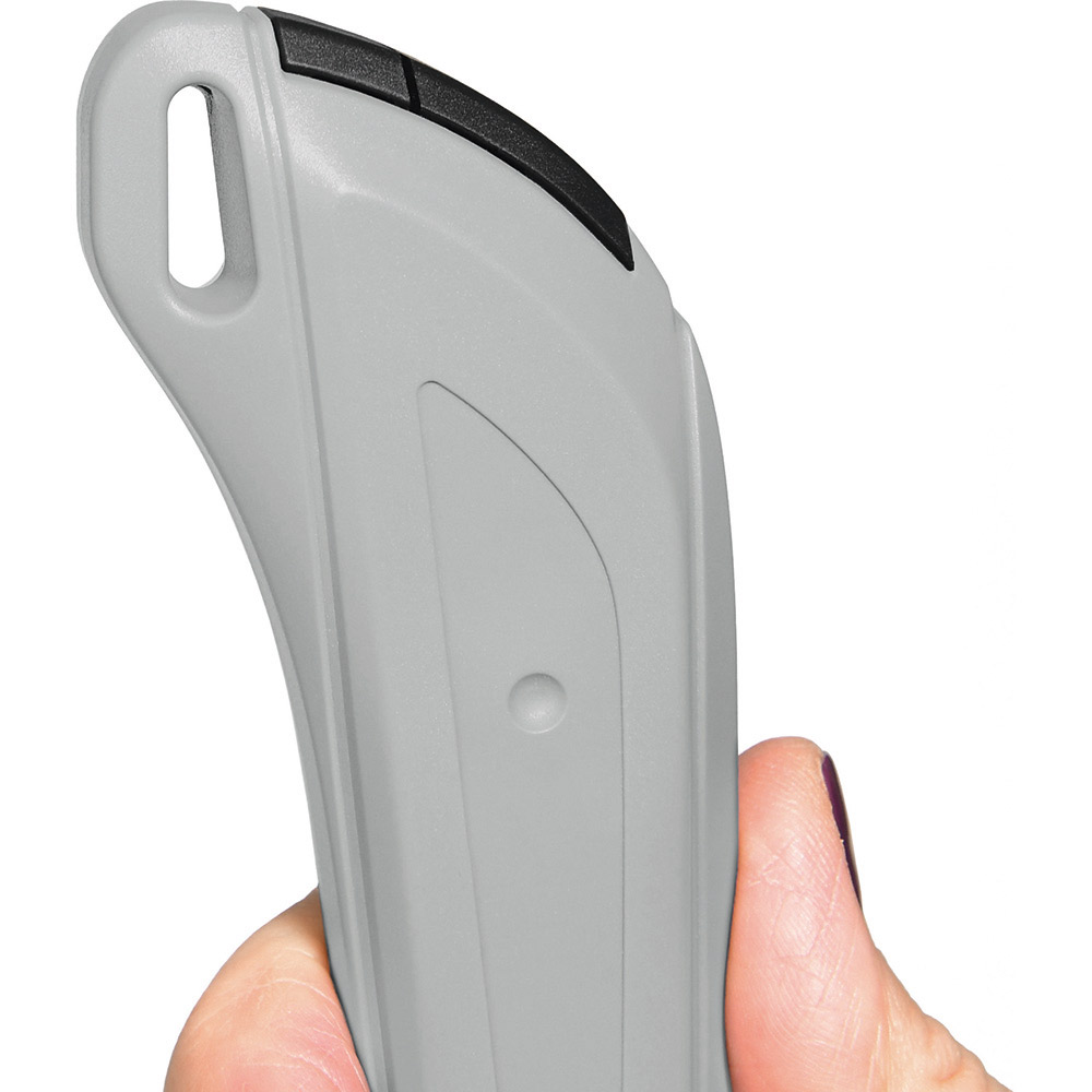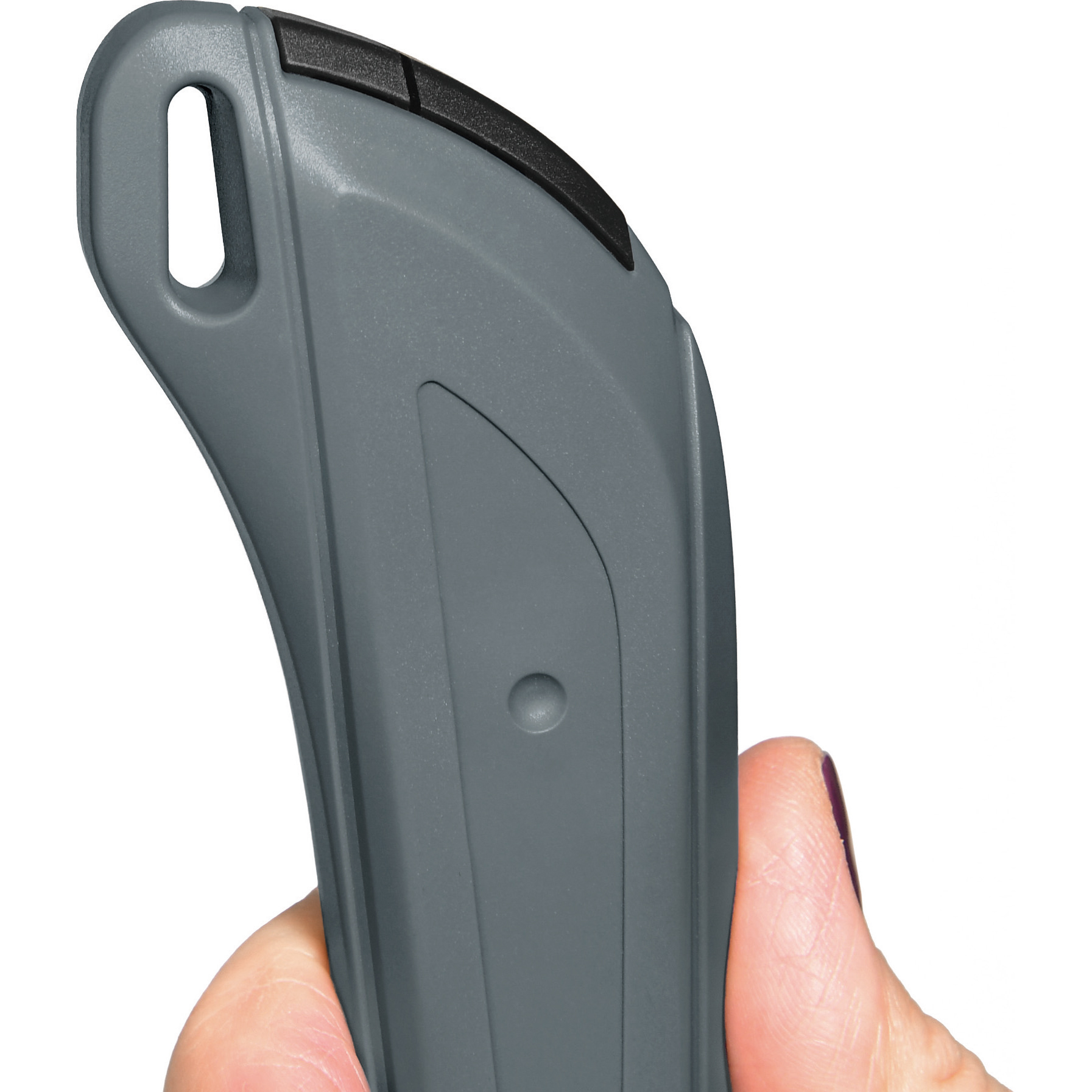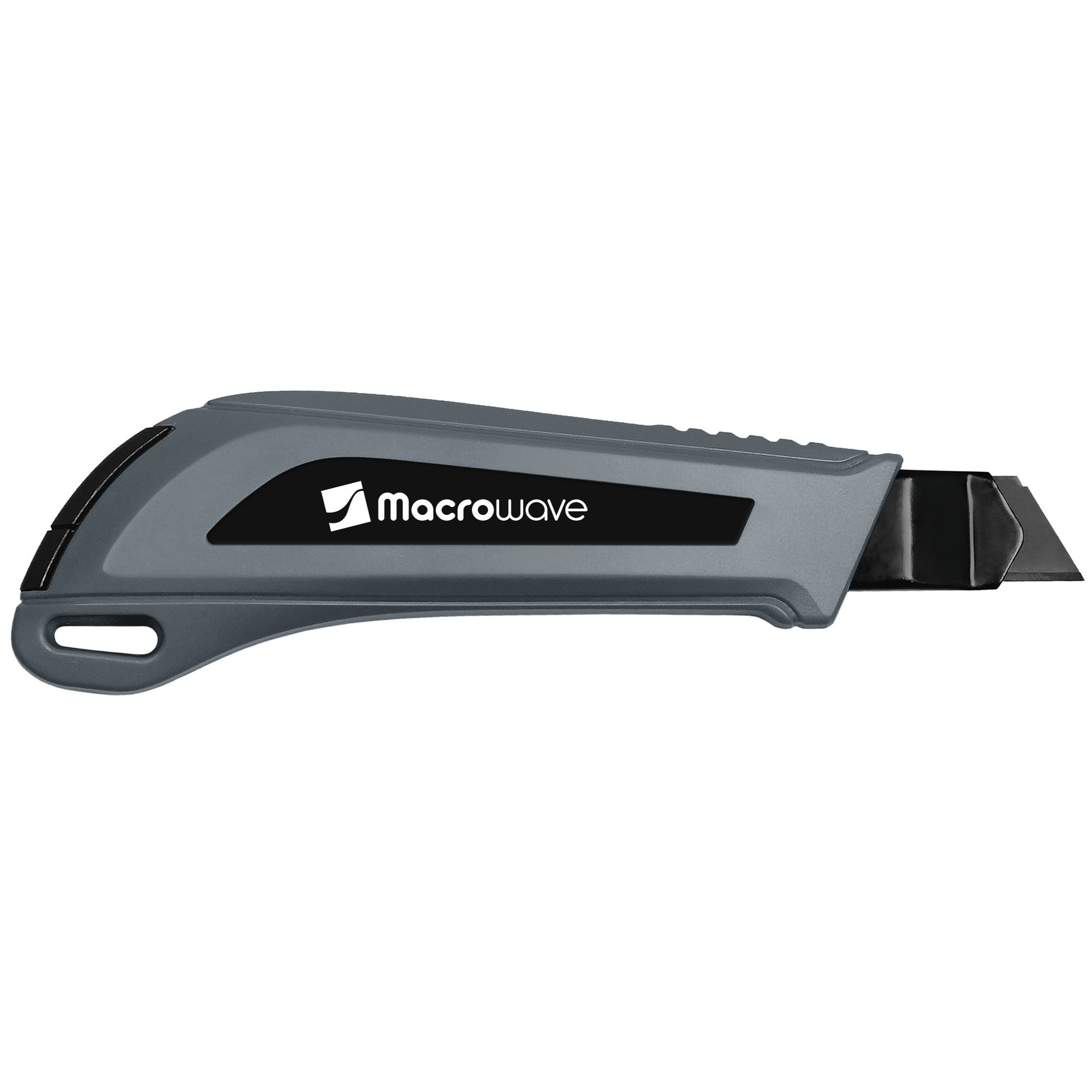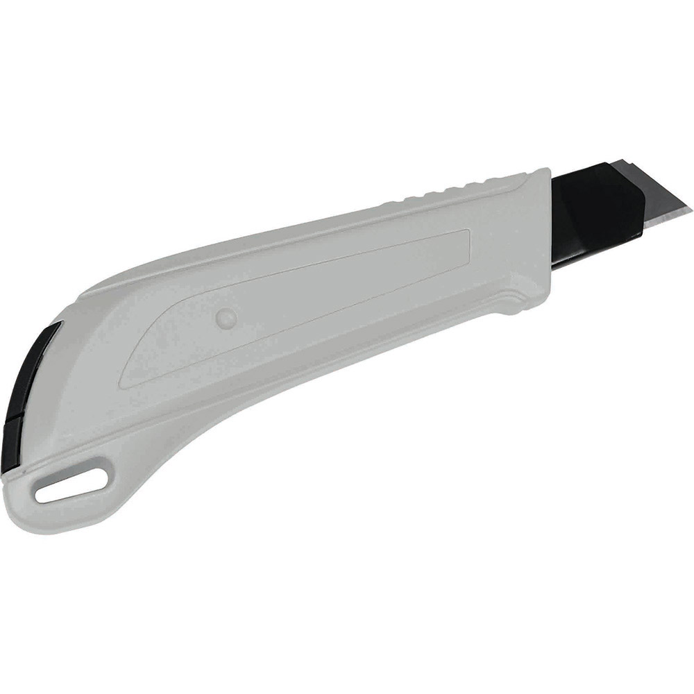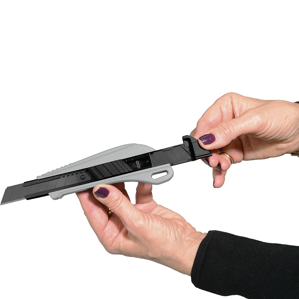 Hochwertiges, ergonomisches Qualitäts-Cuttermesser mit 18 mm SK2 Hochleistungs-Abbrechklinge. Extrem hohe Schnitthaltigkeit durch den hohen Kohlenstoffgehalt der SK2 Stahlklinge. Die schwarze Klinge steht für besondere Schärfe und Langlebigkeit. Ein spezieller Schliff erhöht die Anfangsschärfe. In der äußerst robusten Edelstahl-Führungsschiene mit Schieberaster, kann die Klinge in der gewünschten Länge arretiert werden. Die Rücklaufsperre in der Führungsschiene verhindert, dass die Klinge beim Zurückfahren einfach aus dem Gehäuse springt. Material: schlagfestes Gehäuse aus ABS, Klingenführungsschiene aus schwarz beschichtetem Edelstahl 430, Schieber aus TPR / ABS. Klinge: 18 mm Abbrechklinge aus SK2 Carbonstahl, Stärke 0,5 mm, Rockwell 62~65 HRC (gehobene Premium-Qualitätsstufe), Korrosionsschutz durch schwarze Beschichtung, max. Klingenausschub 79 mm, dreifach facettengeschärfte Schnittkante, 7 Abbrechsegmente für 8-fache Nutzung. Funktionen: Rücklaufsperre in der Klingenführungsschiene, Endkappe zum Abbrechen der Klingen-Segmente, Klingen-Feststellmechanismus, Öse zum Anbringen eines Lanyards oder Fangriemen. Zubehör: 2 Ersatzklingen im separaten Ersatzklingenbehälter. Verpackung: schwarze Geschenkverpackung