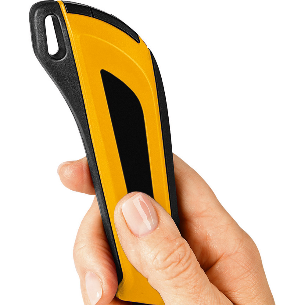 2K Professional - Cuttermesser mit 18 mm SK2 Hochleistungs-Abbrechklinge. Absolut hochwertiges Qualitäts-Cuttermesser, ergonomisch und stabil, mit schlagfestem 2-Komponenten-Gehäuse aus ABS und TPR und 18 mm SK2 Hochleistungs-Abbrechklinge für eine sichere Handhabung. Extrem hohe Schnitthaltigkeit durch den hohen Kohlenstoffgehalt der SK2 Stahlklinge. Die schwarze Klinge steht für besondere Schärfe und Langlebigkeit. Ein spezieller Schliff erhöht die Anfangsschärfe. In der äußerst robusten Edelstahl-Führungsschiene mit Schieberaster, kann die Klinge in der gewünschten Länge arretiert werden. Die Rücklaufsperre in der Klingenführungsschiene verhindert, dass die Klinge beim Zurückfahren aus dem Gehäuse springt. Material: schlagfestes 2-Komponenten-Gehäuse aus ABS und TPR, Klingenführungsschiene aus schwarz beschichtetem Edelstahl 430, Schieber aus TPR / ABS. Klinge: 18 mm Abbrechklinge aus SK2 Carbonstahl, Stärke 0,5 mm, Rockwell 62 ~ 65 HRC (gehobene Premium-Qualitätsstufe), Korrosionsschutz durch schwarze Beschichtung, max. Klingenausschub 79 mm, dreifach facettengeschärfte Schnittkante, 7 Abbrechsegmente für 8-fache Nutzung. Funktionen: Rücklaufsperre in der Klingenführungsschiene, Endkappe zum Abbrechen der Klingen-Segmente, Öse zum Anbringen eines Lanyards oder Fangriemen. Zubehör: 2 Ersatzklingen im separaten Ersatzklingenbehälter. Verpackung: schwarze Geschenkverpackung.