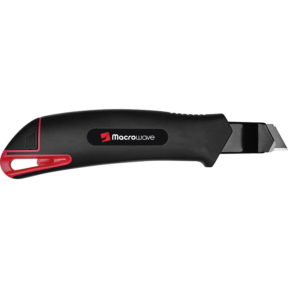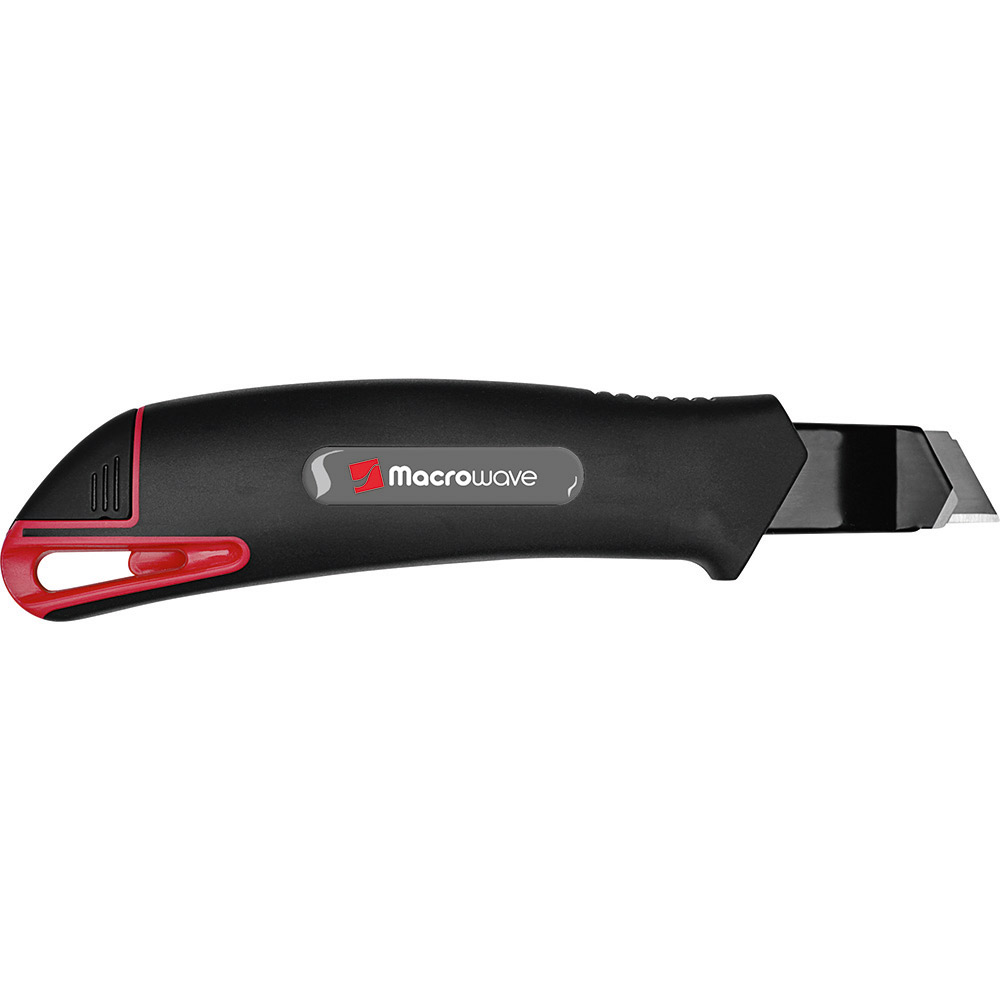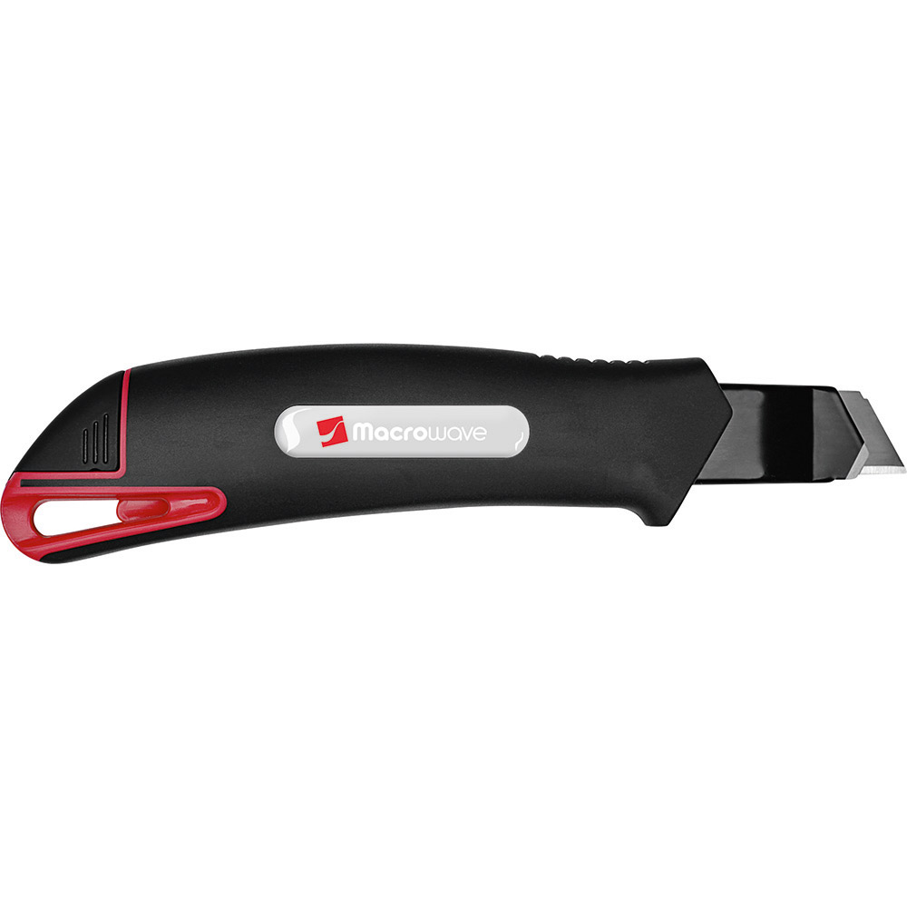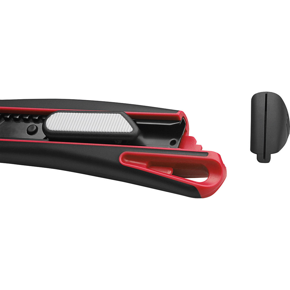 Qualitäts-Cuttermesser mit 18 mm SK2 Hochleistungs-Abbrechklinge. Höhere Stabilität der Klinge durch 0,6 mm Stärke, im Vergleich zu Standardklingen. Das Messer eignet sich daher auch für das Schneiden von stärkerem Schneidgut. Extrem hohe Schnitthaltigkeit durch den hohen Kohlenstoffgehalt der SK2 Stahlklinge. Die schwarze Klinge steht für besondere Schärfe und Langlebigkeit. Ein spezieller Schliff erhöht die Anfangsschärfe. In der Metallführungsschiene mit Schieberaster kann die Klinge in der gewünschten Länge arretiert werden. Die Rücklaufsperre in der Führungsschiene verhindert, dass die Klinge beim Zurückfahren aus dem Gehäuse springt. Die Spitze der Klingenführungsschiene ist extra gehärtet, sodass diese auch als Farbdosenöffner, Notschraubendreher, oder als Schnellschneider für Paketklebeband, usw. verwendet werden kann, ohne die Klinge ausfahren zu müssen. Material: schlagfestes 2-Komponenten-Gehäuse aus TPR und ABS, Klingenführungsschiene aus schwarz beschichtetem Edelstahl 430, Schieber aus TPR / ABS. Klinge: 18 mm Abbrechklinge aus SK2 Carbonstahl, Stärke 0,6 mm, Rockwell 62~65 HRC (gehobene Qualitätsstufe), Korrosionsschutz durch schwarze Beschichtung, max. Klingenausschub 75 mm, 2-seitiger Klingenschliff, 7 Abbrechsegmente für 8-fache Nutzung. Funktionen: Rücklaufsperre in der Klingenführungsschiene, Endkappe zum Abbrechen der Segmente, Öse zum Anbringen eines Lanyards oder Fangriemen. Verpackung: schwarze Geschenkverpackung.