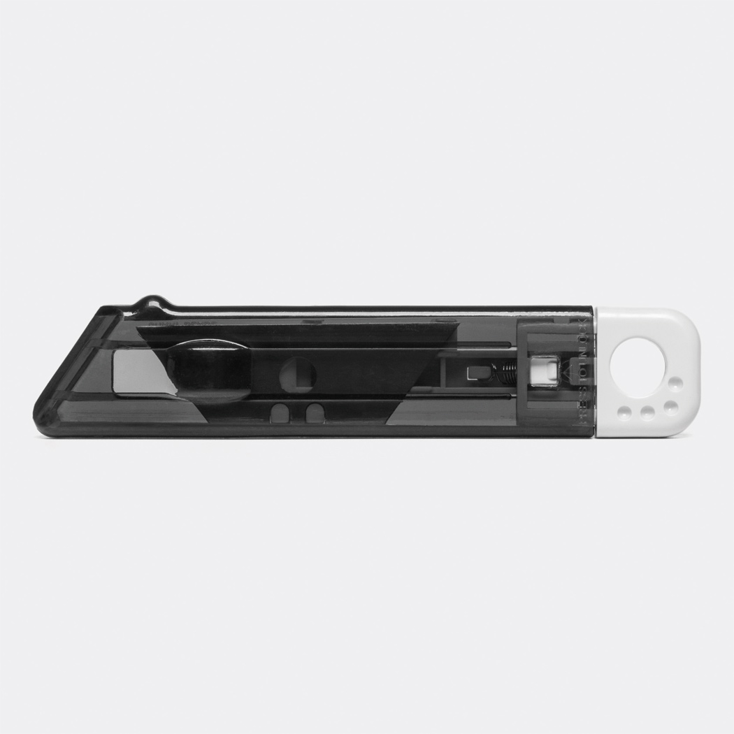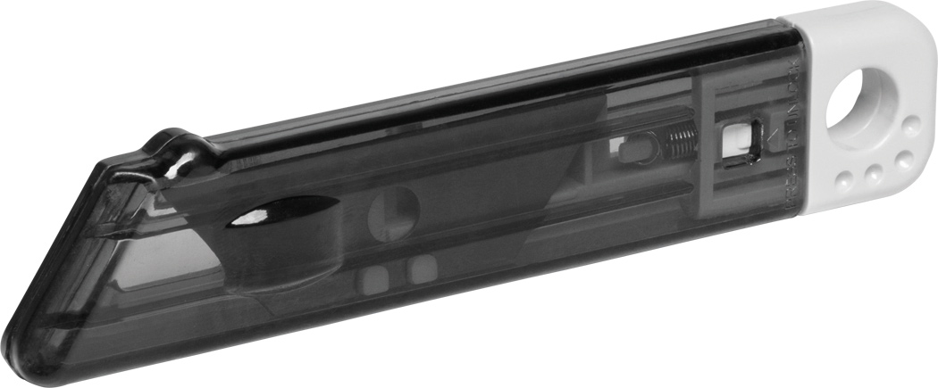 Cuttermesser SLIDE IT: Schiebemechanismus mit Rückholfeder, auswechselbare Klinge, farbiges Kunststoff-Gehäuse mit Öse zum Aufhängen am Griffende