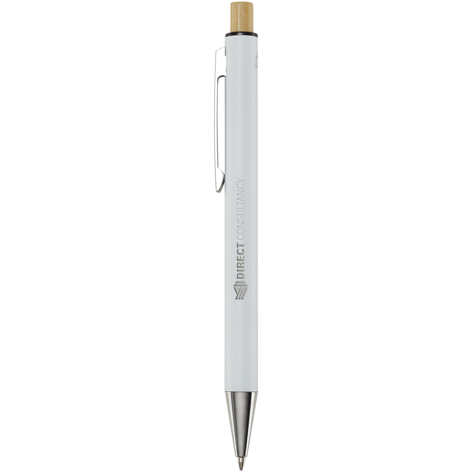 Der Cyrus Kugelschreiber ist aus recyceltem Aluminium hergestellt, was weniger Energie benötigt als die Herstellung von Aluminium aus Rohstoffen. Es reduziert außerdem die Abfallmenge auf Mülldeponien und trägt dazu bei, natürliche Ressourcen zu schonen und Treibhausgasemissionen zu reduzieren. Druckknopf ist aus Bambus gefertigt. Tintenfarbe: Blau. Schreiblänge: 800 Meter. Spitzengröße: 1,00 mm.
