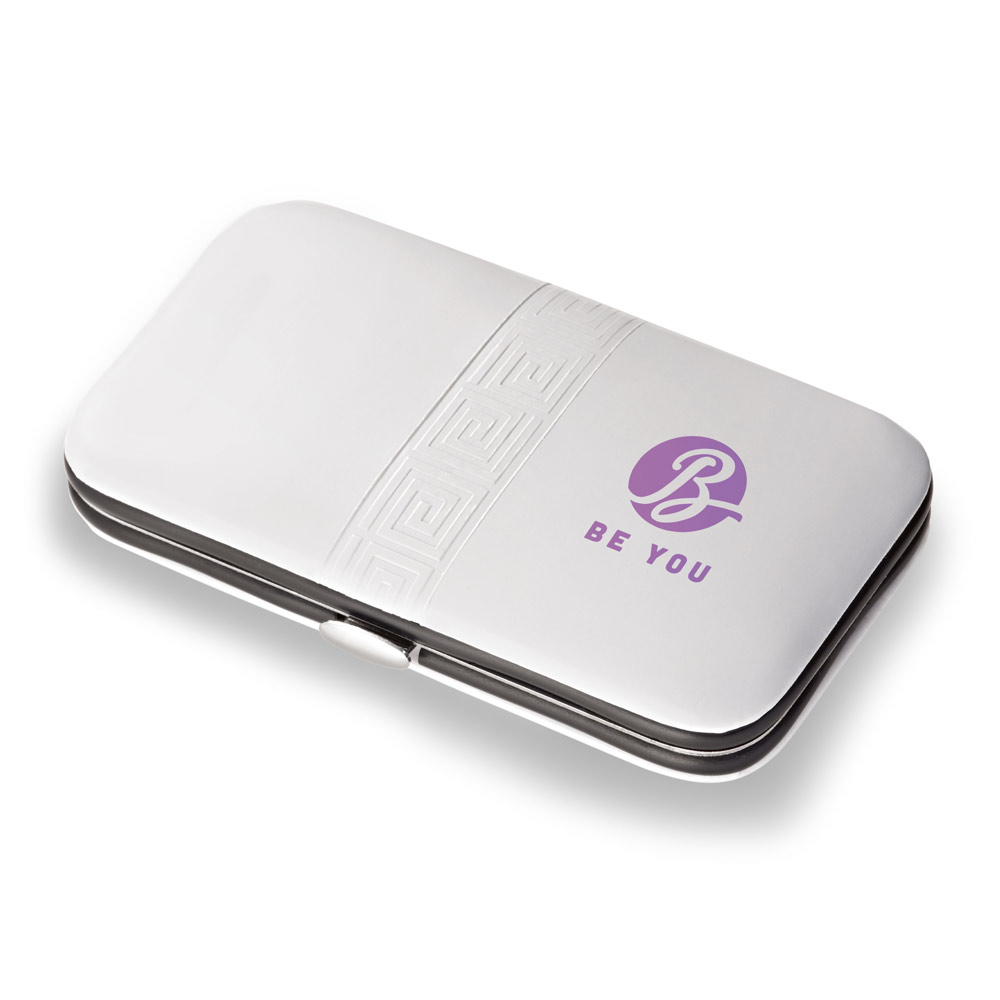 Maniküre Set (5teilig) bestehend aus einer Nagelfeile, einer Nagelschere, einer Nagelzange, einer Pinzette und einem Nagelhautschieber. Geliefert in einem Etui aus PU. 110 x 65 x 20 mm