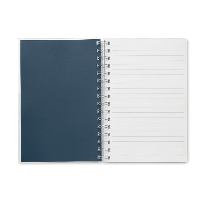 DIN A5-Notizblock. 80 Blatt liniertes Papier. Spiralbindung. Umschlag aus RPET.