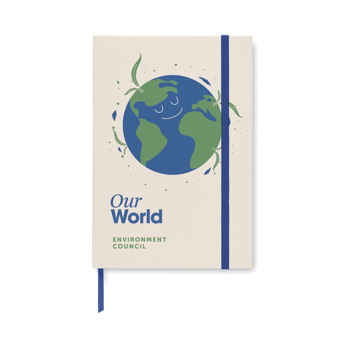 DIN A5 Notizbuch mit Hard Cover aus 70% recyceltem Milchkarton und 30% recyceltem Papier. 80 Blatt (160 Seiten) liniertes Recyclingpapier 80 g / m². Gebunden. Elastisches Verschlussband und Lesebändchen.