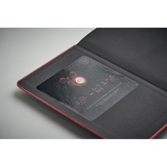 DIN A5 Notizbuch mit nachhaltigem Hard Cover. 92 Blatt (184 Seiten) liniertes recyceltes Papier. Lesebändchen aus Baumwolle. Inklusive unterschiedlichem Saatgut. Hergestellt in der EU. Dieses nachhaltige Notizbuch hat eine geringe Auswirkung auf die Umwelt und ist ein tolles Werbeprodukt. Je nach Coverfarbe liegt ein anderes Saatgut bei, das Sie in Ihrem Garten aussäen können. Der Farbcode gibt die Sorte des Samens an: Heidelbeere (04), Erdbeere (05), Gänseblümchen (13), Apfel (48) und Kiefer (60).