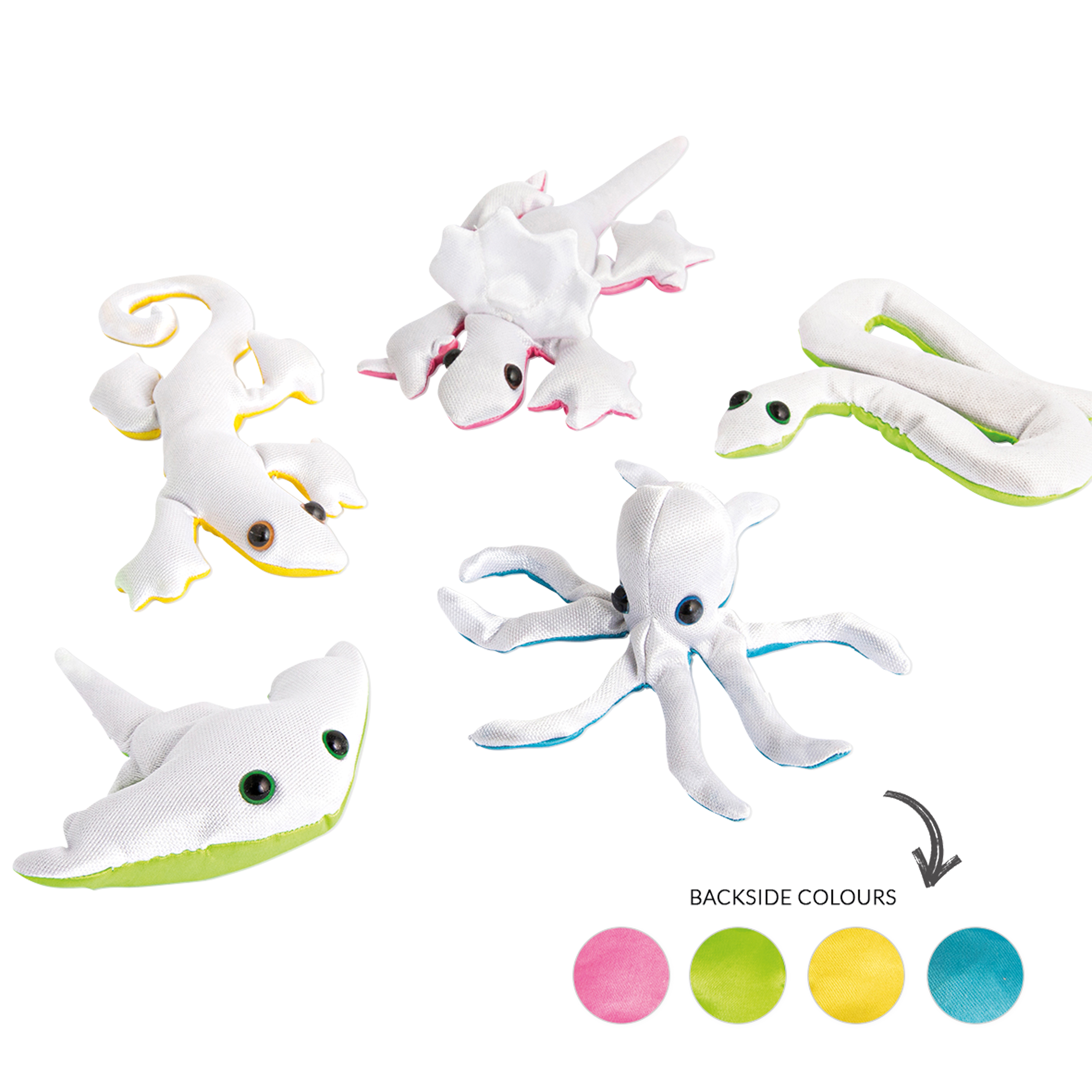 Dein cooles Sandtier zum Sammeln, Spielen und Tauschen und jetzt NEU zum kreativen Gestalten! Diese Sandtiere können mit allen gängigen Finelinern, Markern oder Textilstiften individuell bemalt werden, sodass dank deiner Kreativität ein echtes Unikat entsteht! Edel schimmernd, mit Sand gefüllt, äußerst robust Í echt schöne Begleiter! 6 verschiedene Tiere in den Farbvarianten gelb, blau, grün, pink.