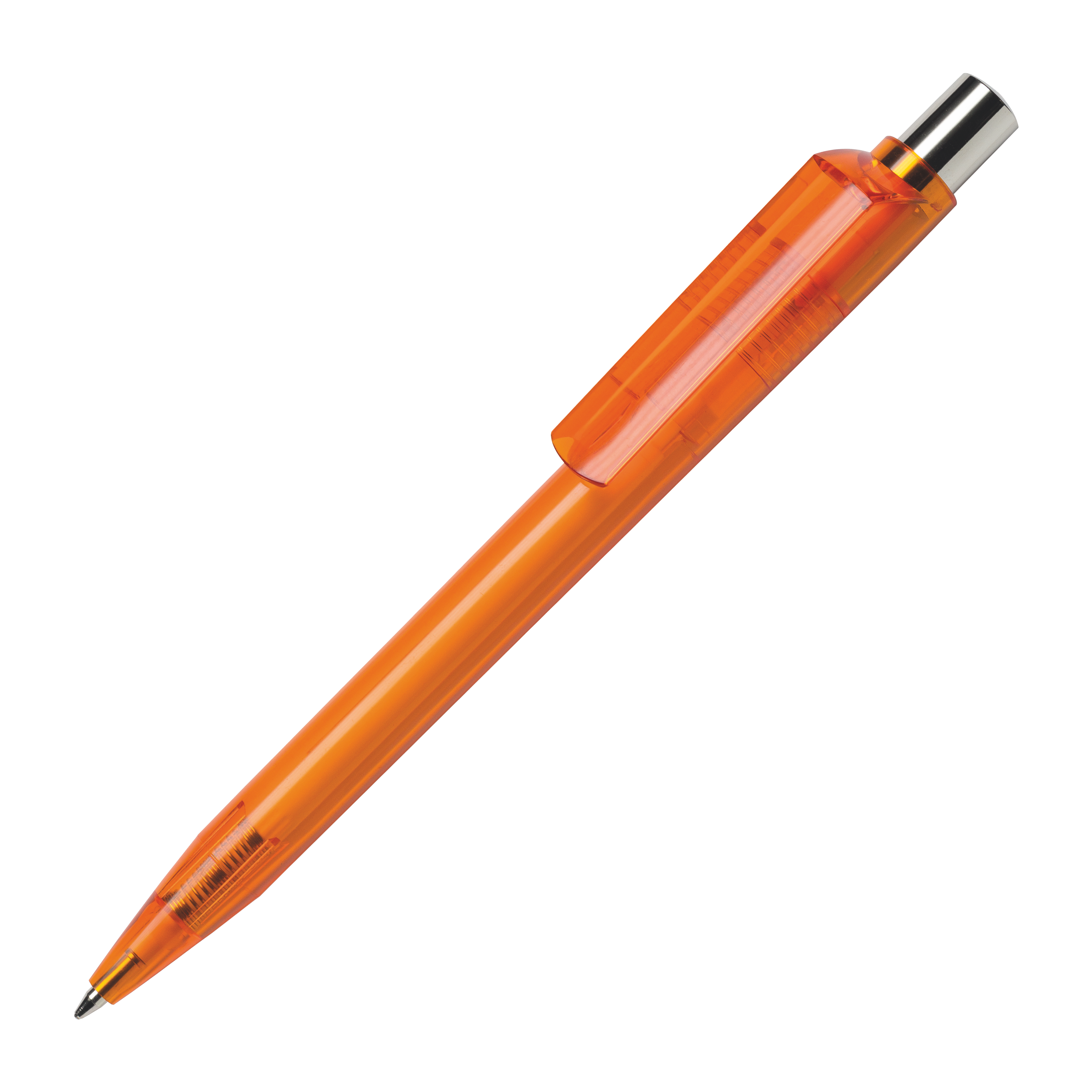 DOT D1 30 CR Kugelschreiber Maxema, Nüchtern und minimalistisch im Design - aber versehen mit einer ganz persönlichen Maxema-Note, dem kleinen Pünktchen im Drücker, wird dieses oft vernachlässigte Detail zu einem echten Stilelement. Das Gehäuse, das Drücker-Element und der Clip sind in 14 transparenten Farben lieferbar, die bereits ab 2.000 Stück untereinander kombinierbar sind. Der Drücker ist aus glänzendem Metall gefertigt. Der Kugelschreiber ist mit einer blauschreibenden Großraummine ausgestattet.