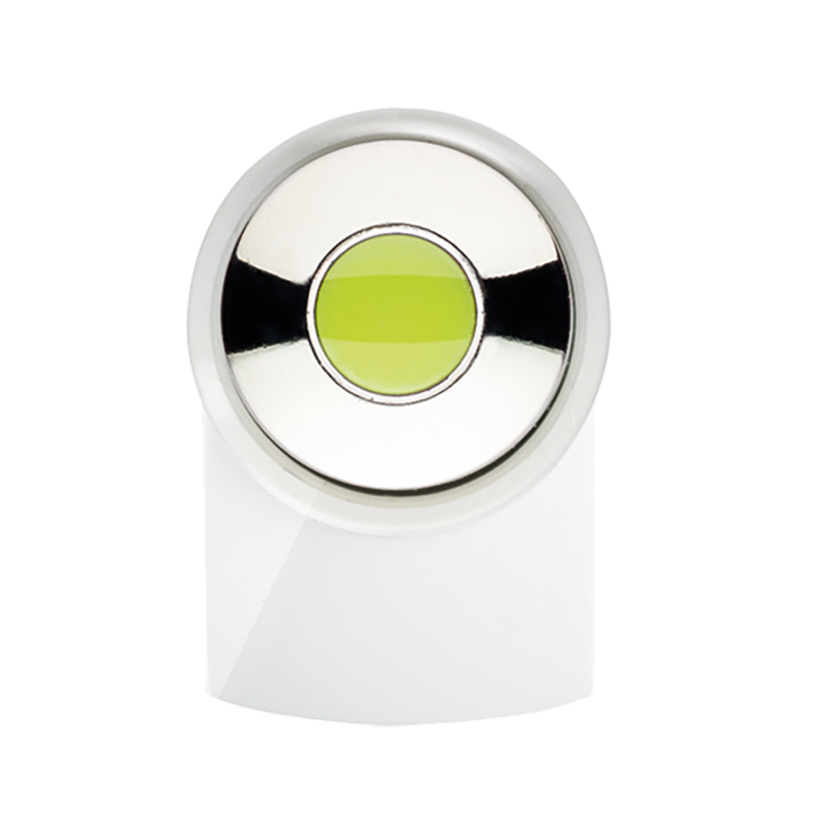 DOT D1 B CR Kugelschreiber Maxema, glänzende Flächen, deckende Farben, Gehäuse und Clip in Weiß, Druckknopf verchromt, kleine Kugel in deckenden Farben im Innern des Druckknopfes, blauschreibend